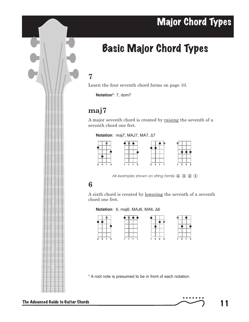 Commonly referred to as jazz chords. The Advanced Guide to Guitar Chords Series provides detailed information on voicing 4-part chords.
