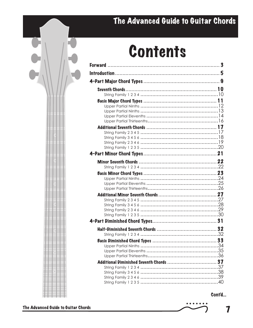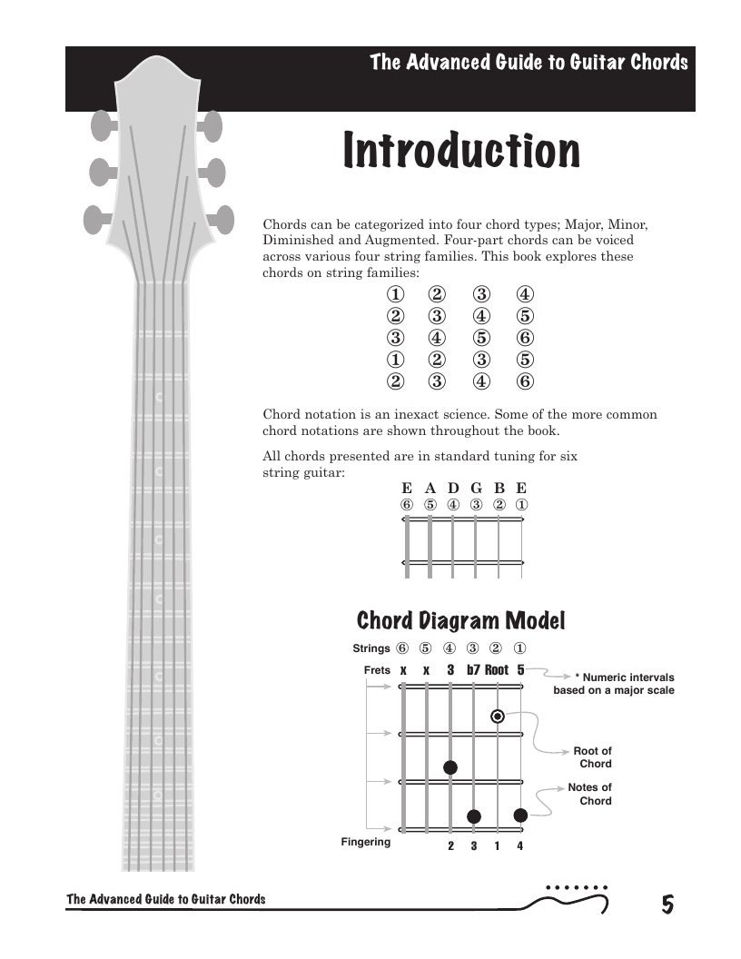 Commonly referred to as jazz chords, this book provides detailed information on voicing 4-part chords. Covers common string families. Beyond learning open and barre chords, most guitarists struggle with advanced chords. Commonly called "Jazz" chords, these more sophisticated voicings find a wide use in all forms of music.