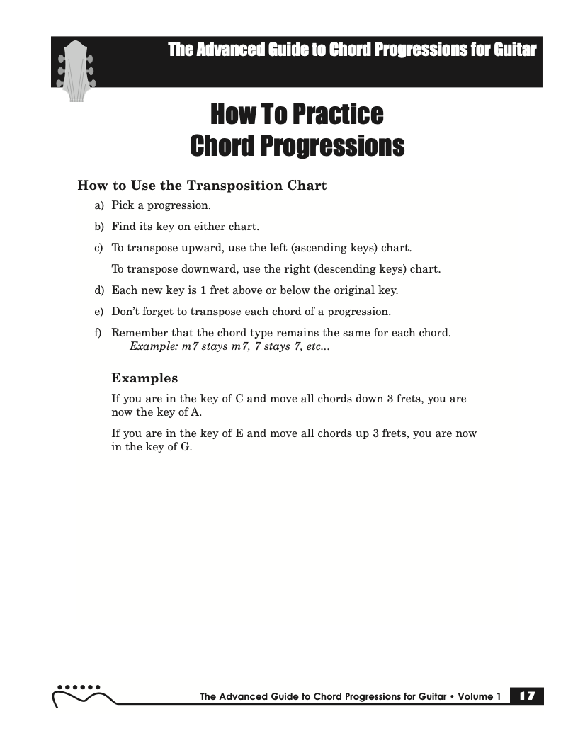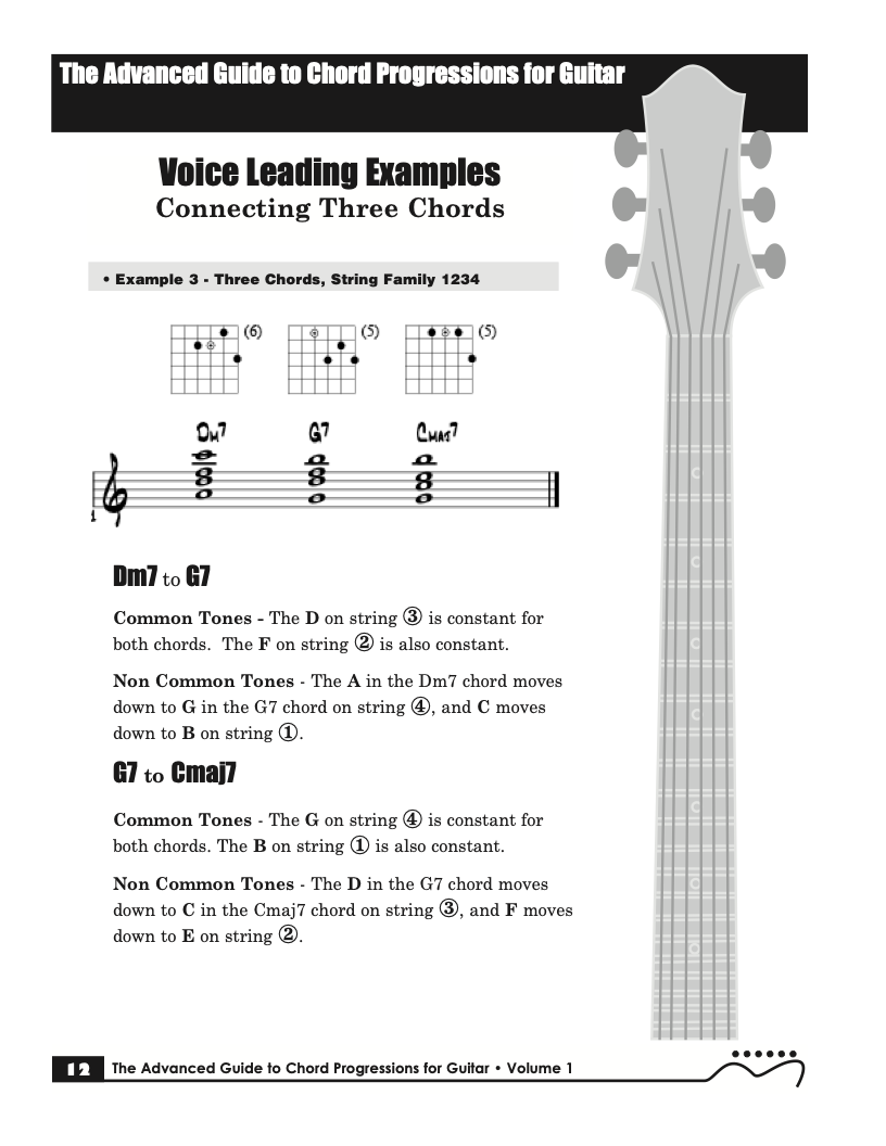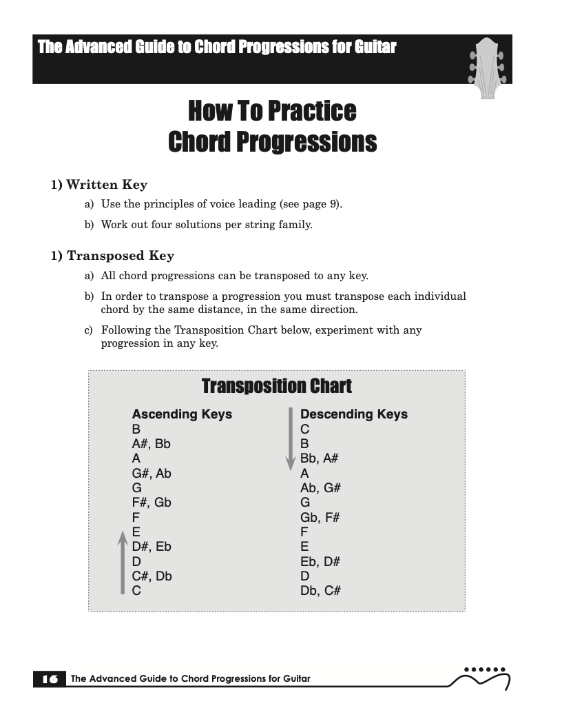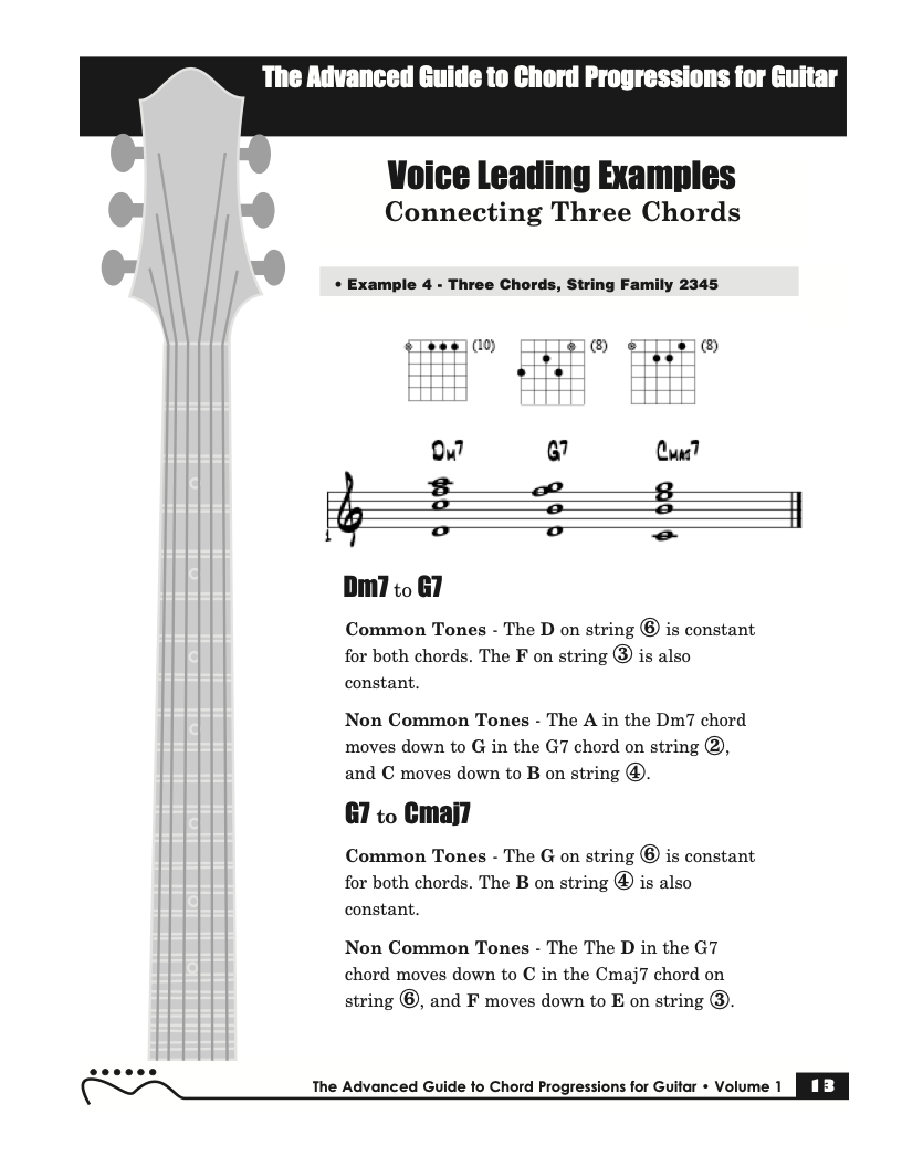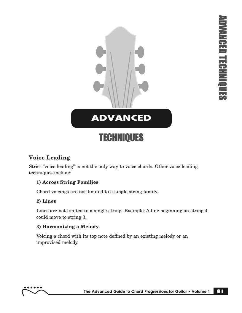 Volume I of The Advanced Guide to Chord Progressions for Guitar features the principles of voice leading applied to chord progressions. These principles, explained using chords from volume I of The Advanced Guide to Guitar Chords. Chapters with common major and minor full diatonic, partial diatonic and chromatic chord progressions are also included to further explore voice leading.