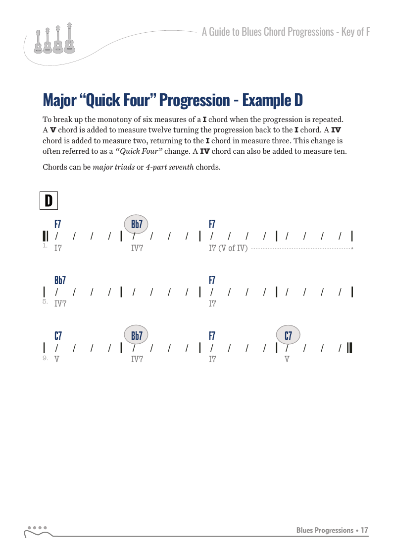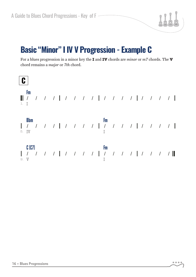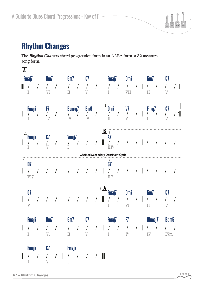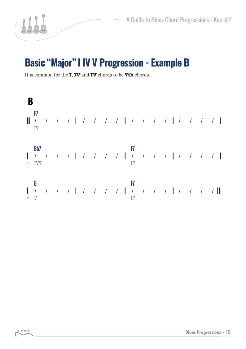 A Guide to Blues Chord Progressions A to Z - Key of F.