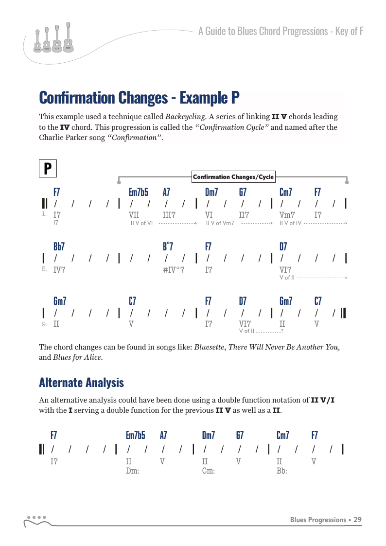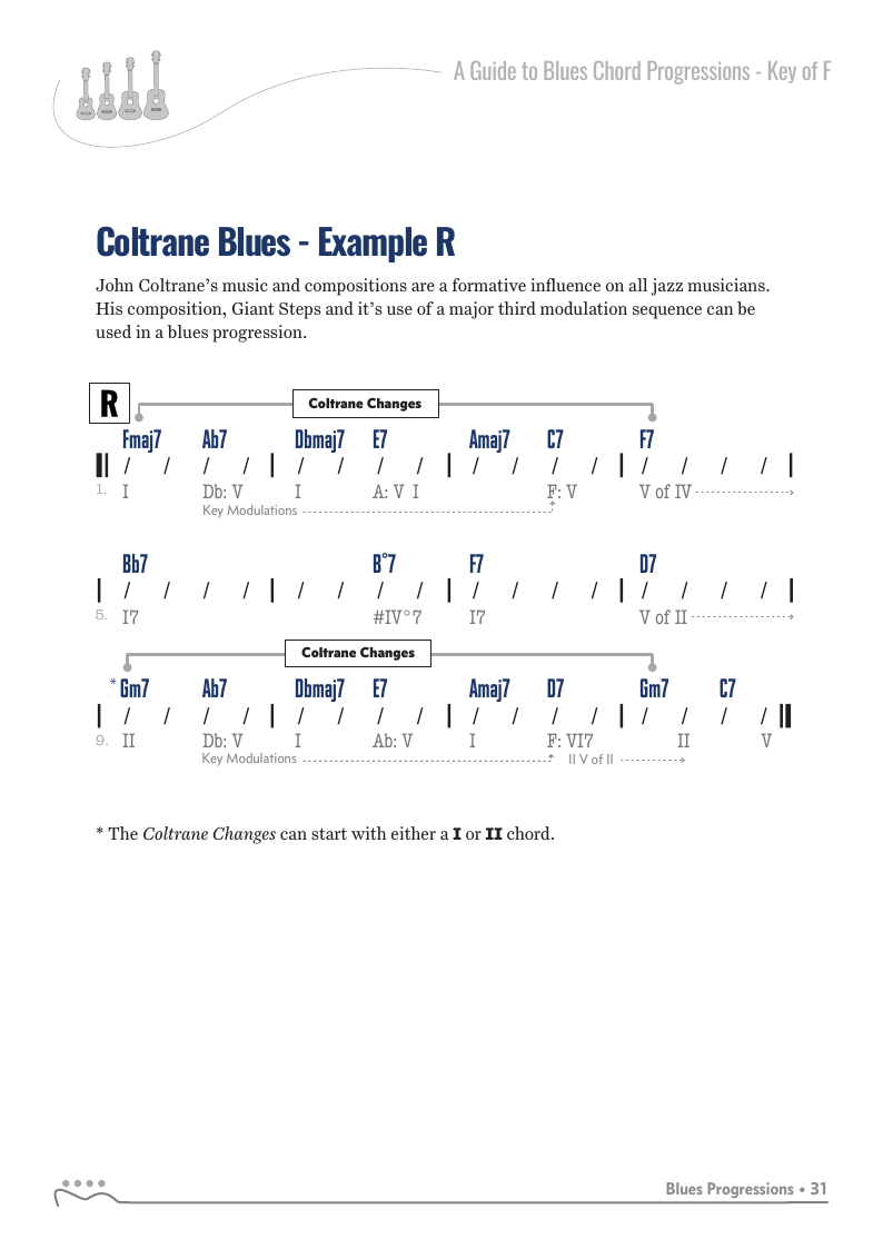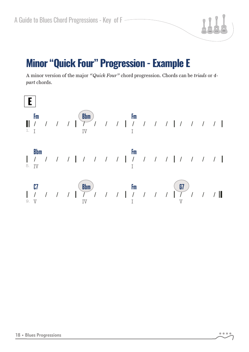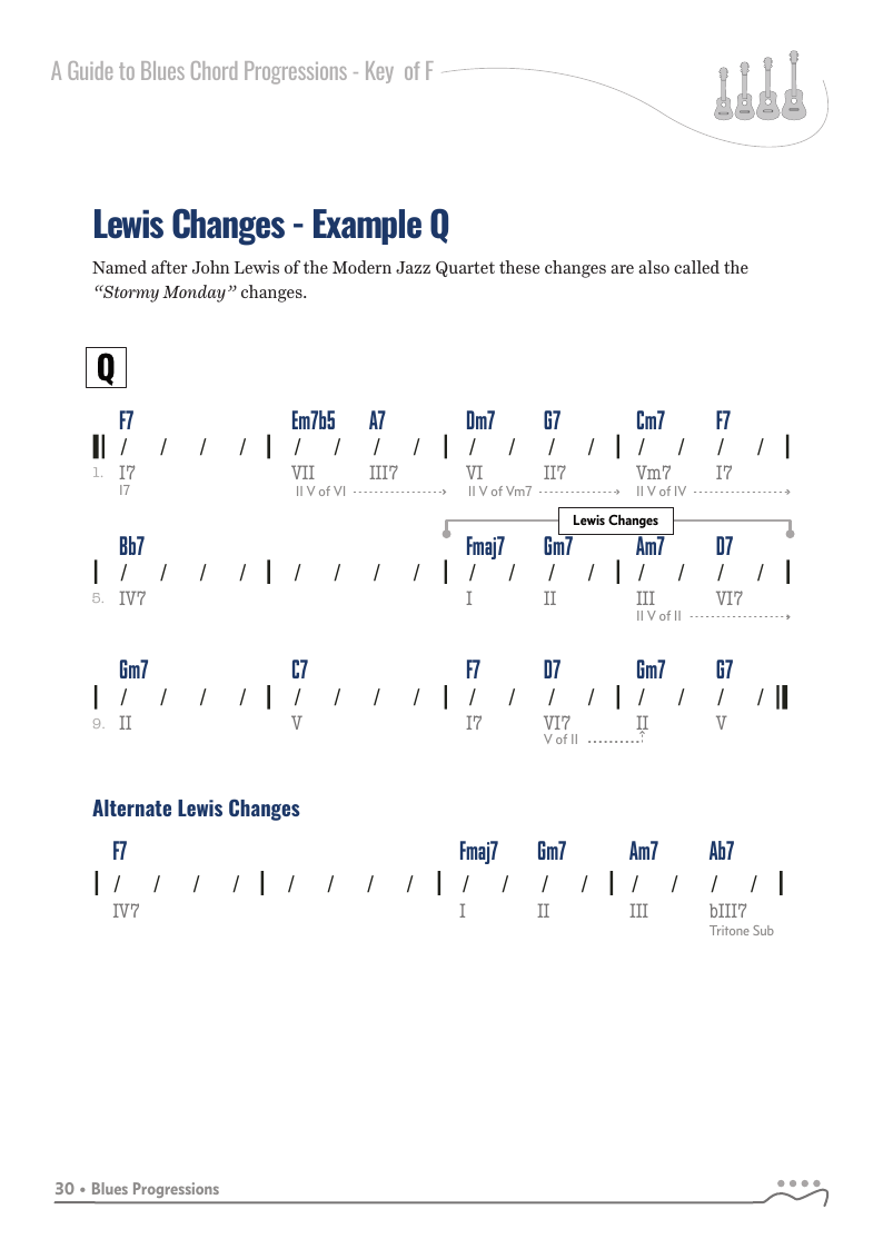 A Guide to Blues Chord Progressions A to Z - Key of F.