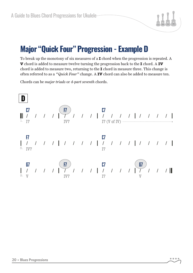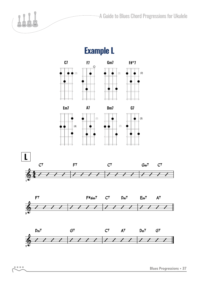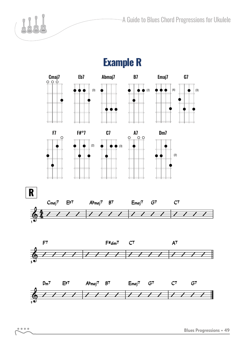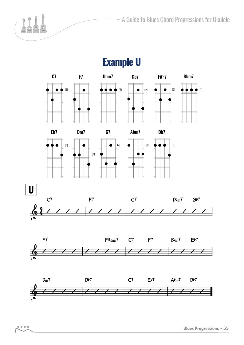 A Guide to Blues Chord Progression for Ukulele A to Z - C Tuningon: Bluesky • facebook • twitter (X)
