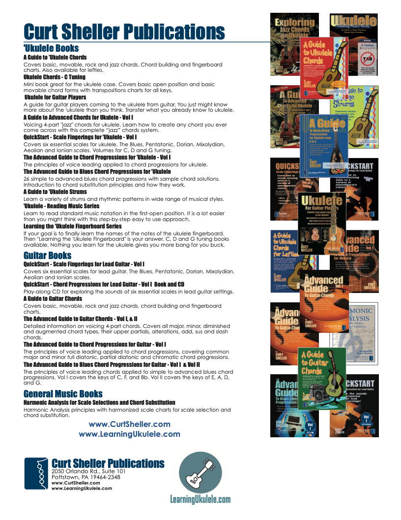 An organized collection of daily practice and reference material for the contemporary ukulele player for developing the vocabulary and knowledge necessary for single note playing. Book: Daily Practice Material for the Contemporary Ukulele
