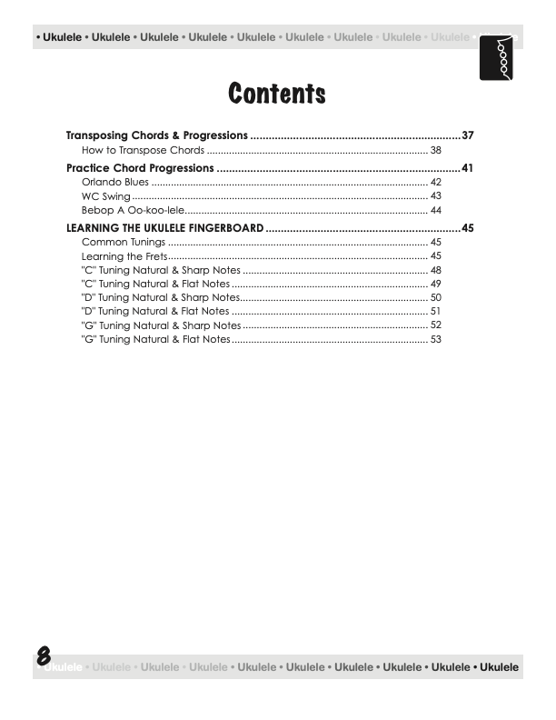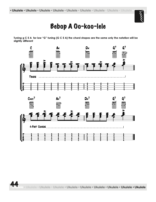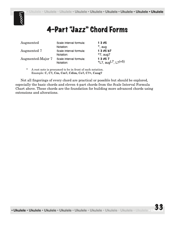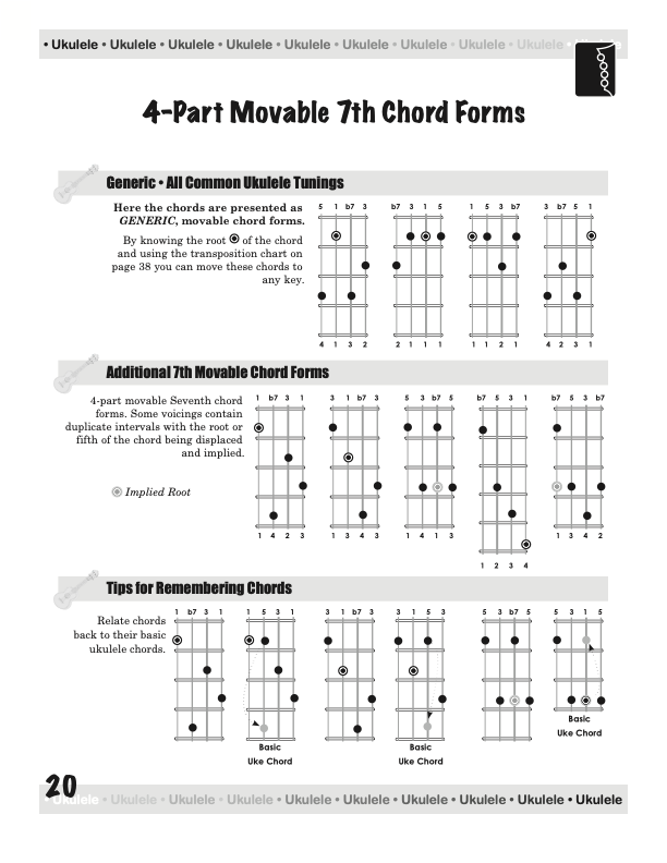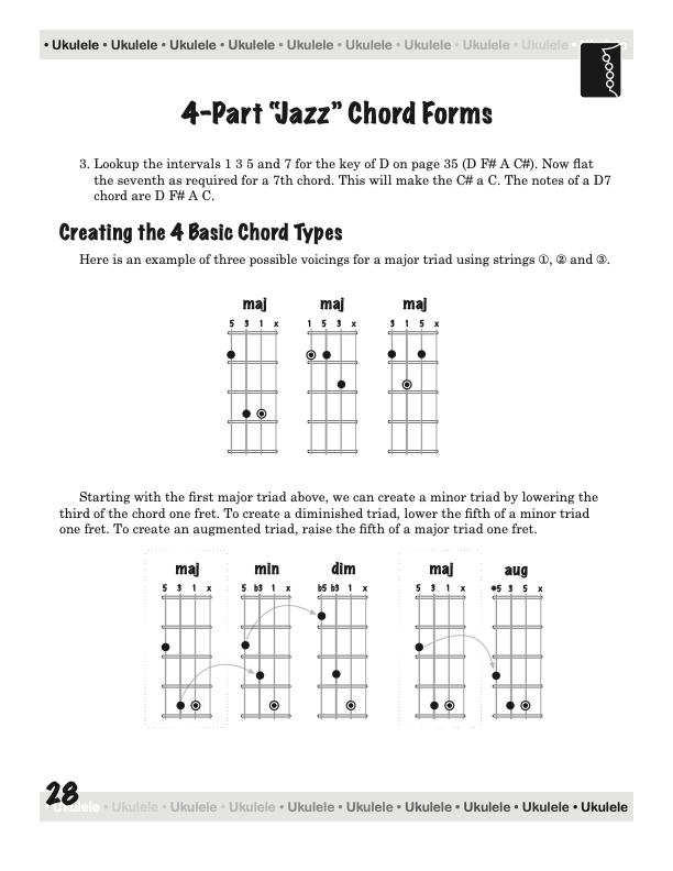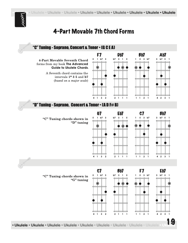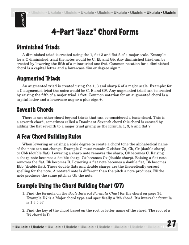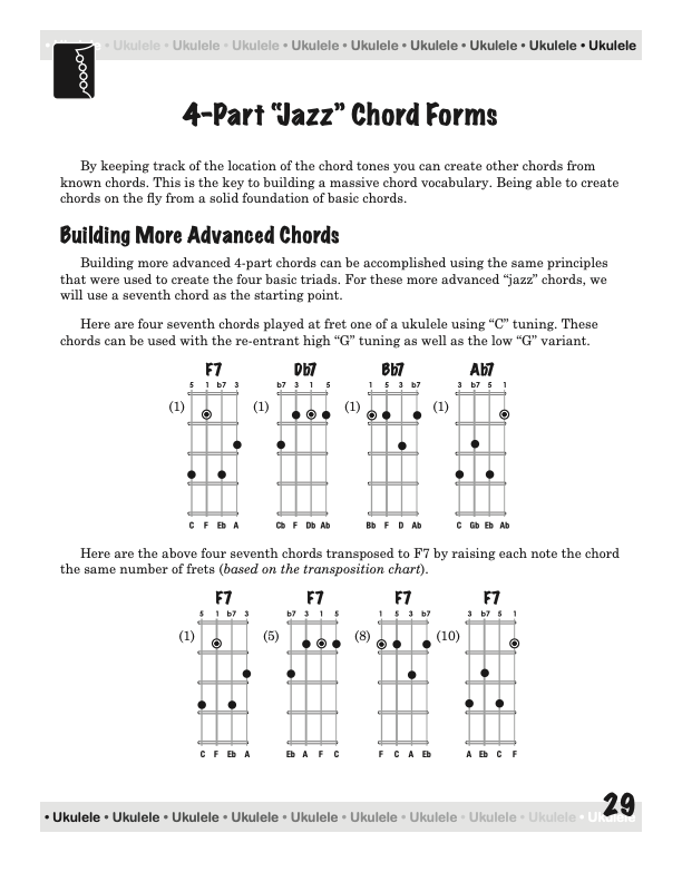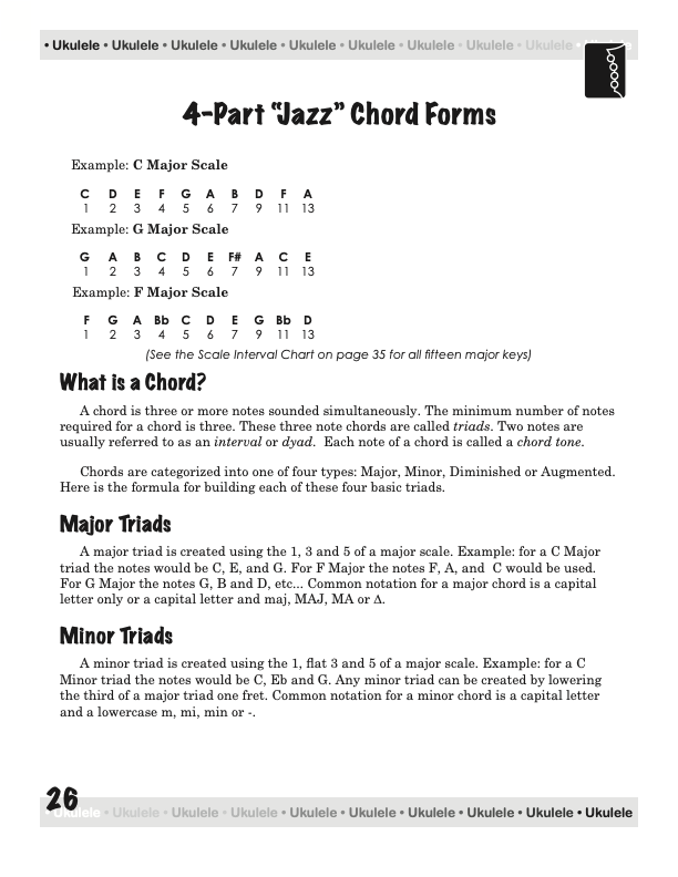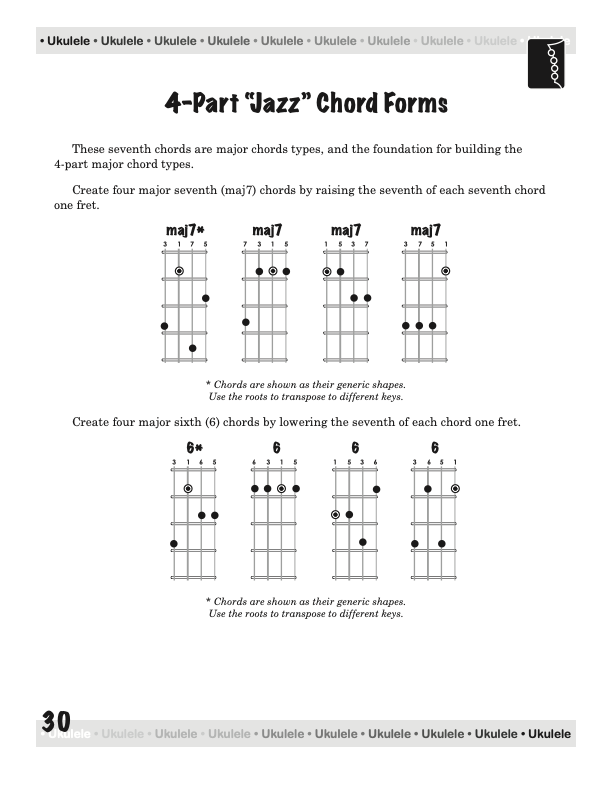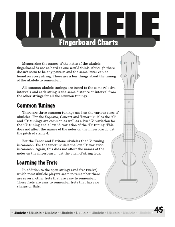 From a few basic chord shapes and an understanding of how chords are constructed, your chord vocabulary can be dramatically increased without endless memorizing. In fact, this book will take the mystery out of playing and understanding ukulele chords on a standard, concert, tenor, or baritone ukulele, using “C” tuning, low or high string four.