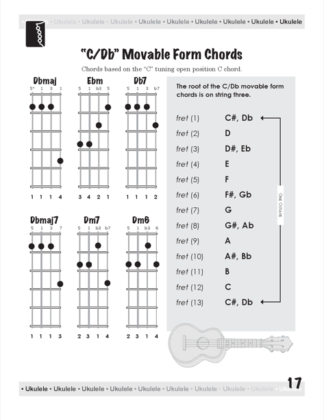 This book will take the mystery out playing and understanding chords on the ukulele, whether it is a standard, concert, tenor or baritone ukulele in C tuning, low or high string four.