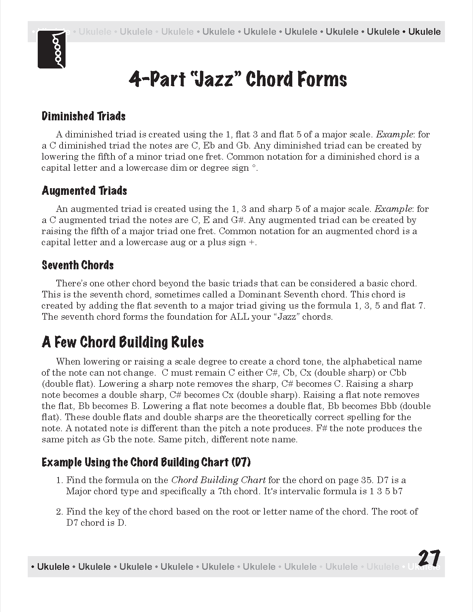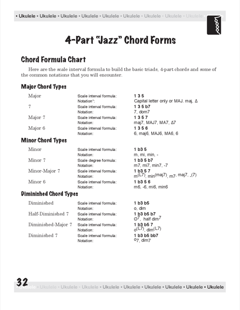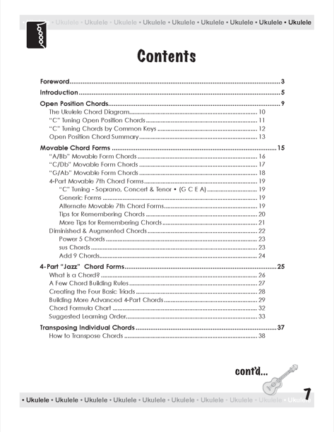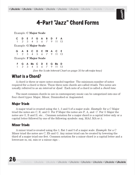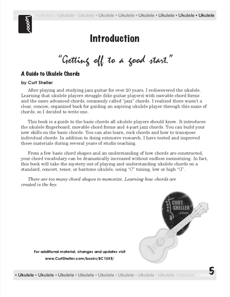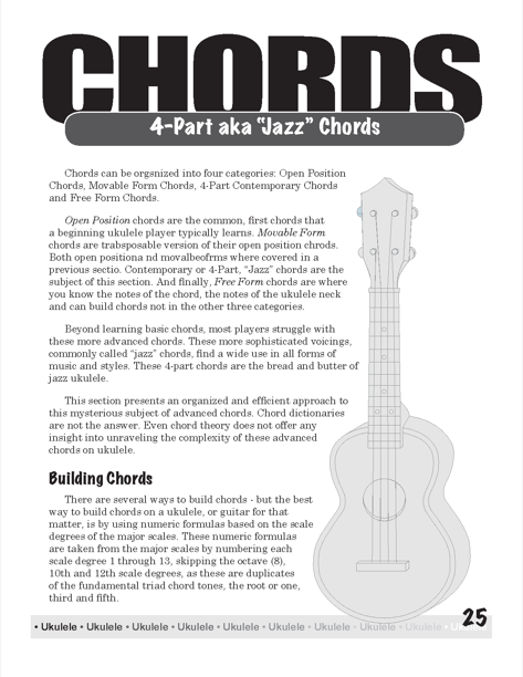 A Guide to Ukulele Chords, Second Edition is designed as a guide to ukulele chords. Covering the basic ukulele chords that ALL ukulele players SHOULD know. A Guide to Ukulele Chords covers movable chord forms, rock chords, how to transpose chords, learning the ukulele fingerboard and includes an introduction to 4-part, a.k.a jazz chords and more...