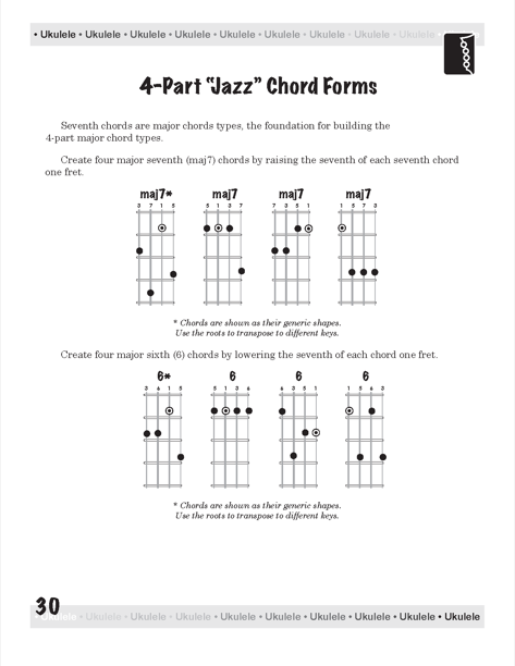 After playing jazz guitar for 20 years, I rediscovered the ukulele. Then I learned that ukulele players struggle (like guitar players) with movable chord forms and the more advanced chords, commonly called “jazz” chords. There was no clear, concise, organized book for guiding an aspiring ukulele player through this maze of chords, so I decided to write one.