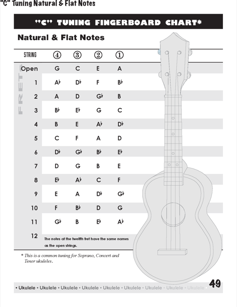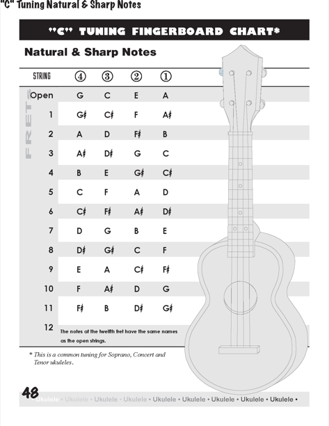 Ukulele Fingerboard Chart for C Tuning, Low or High G – G C E A