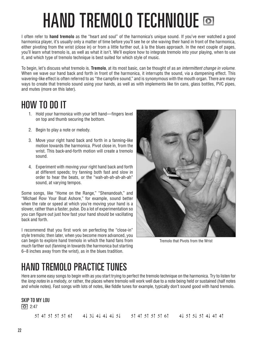The method covers: harmonica basics; standard notation and harmonica tablature; playing single notes and melodies; playing chords and accompaniment; playing in different registers; 1st, 2nd, and 3rd positions; tongue techniques; hand tremolo and using mutes; playing octaves; blues songs, licks, and patterns; bending notes; playing in minor keys; many songs in different styles; video tutorials; and more!