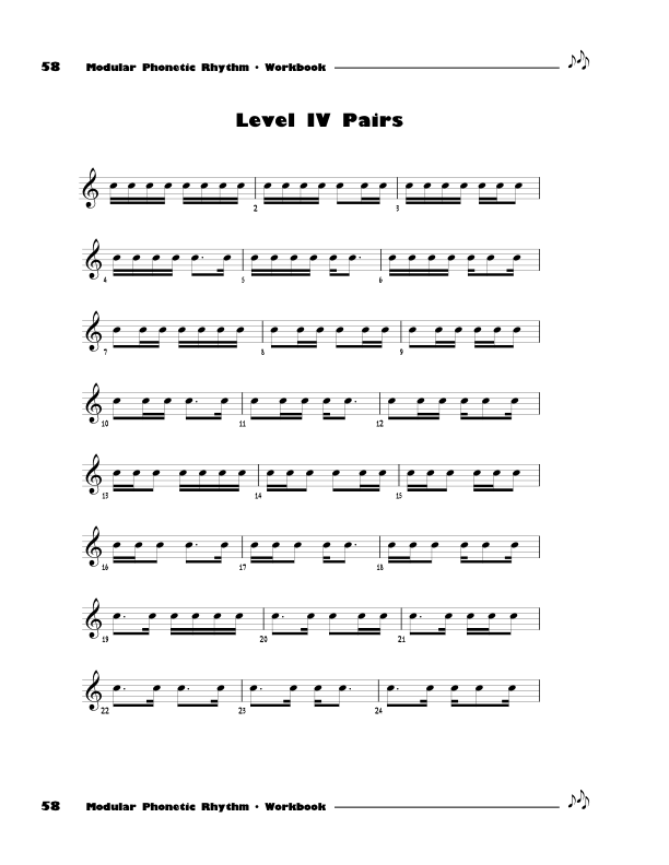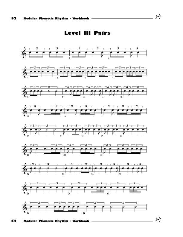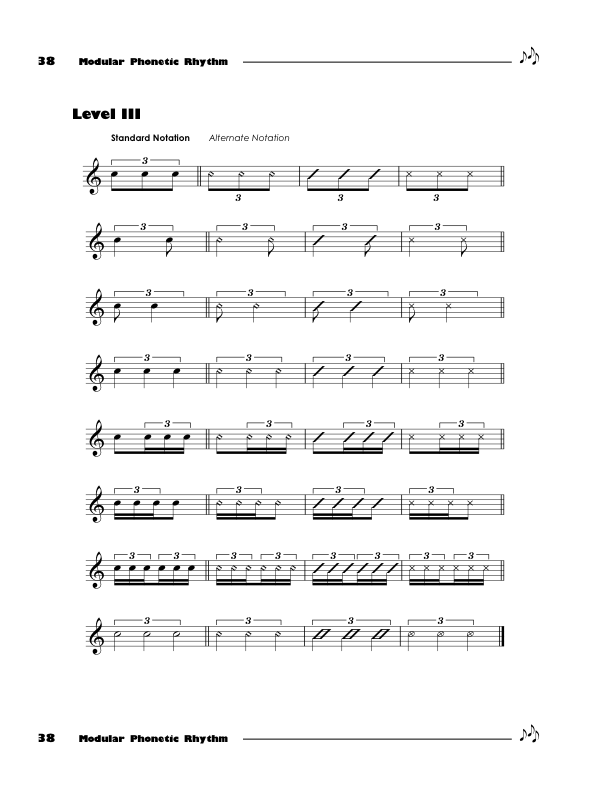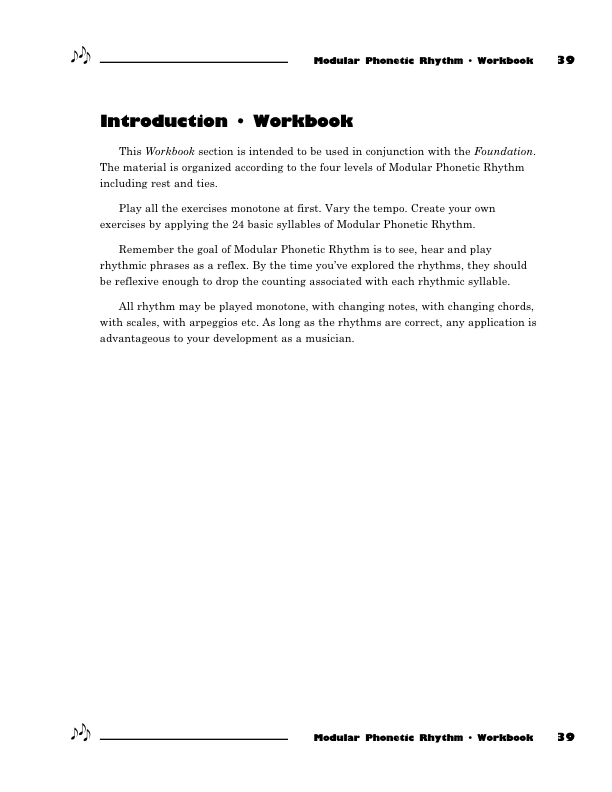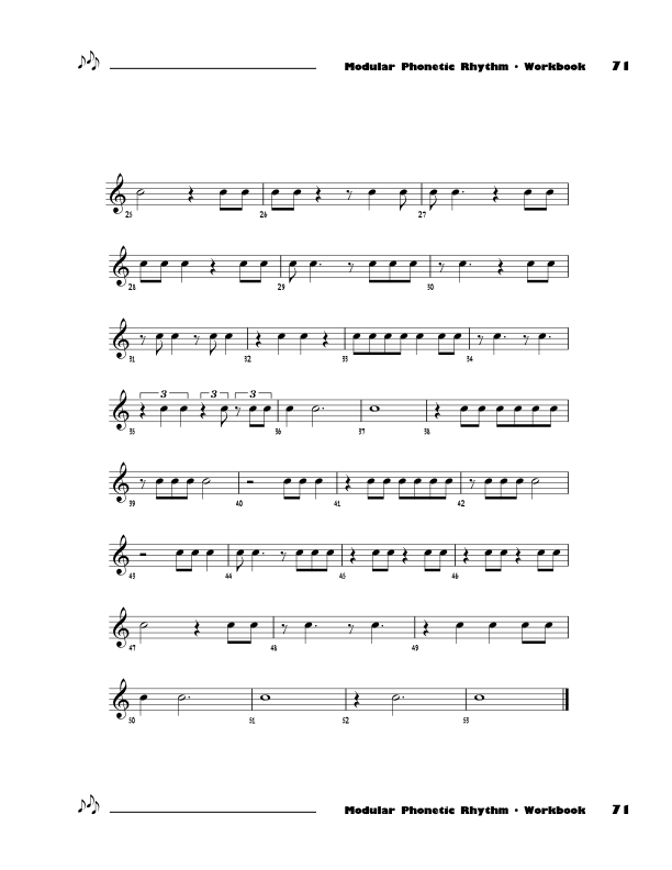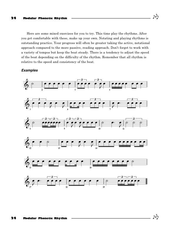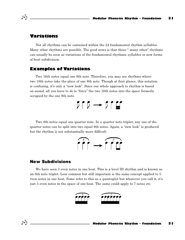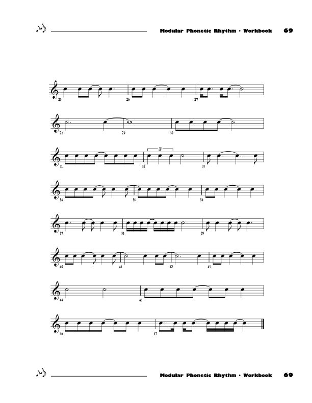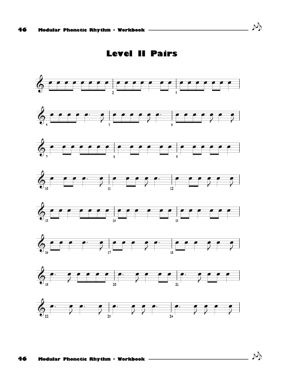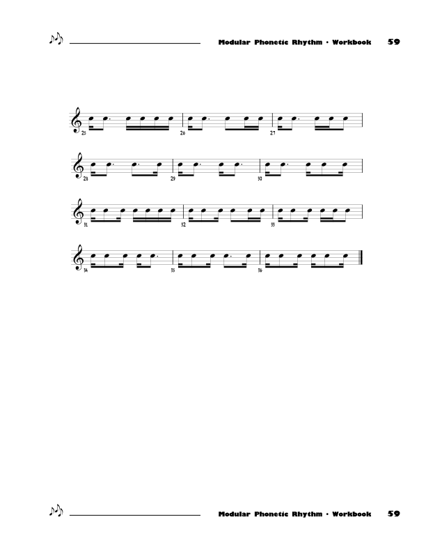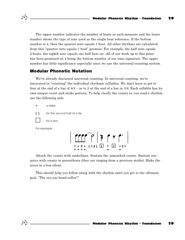 Modular Phonetic Rhythm represents a significant advance in the teaching and application of rhythm. Eliminating many inefficient aspects of rhythm education, Modular Phonetic Rhythm streamlines the traditional educational approach, resulting in a reflexive reaction to rhythm.
