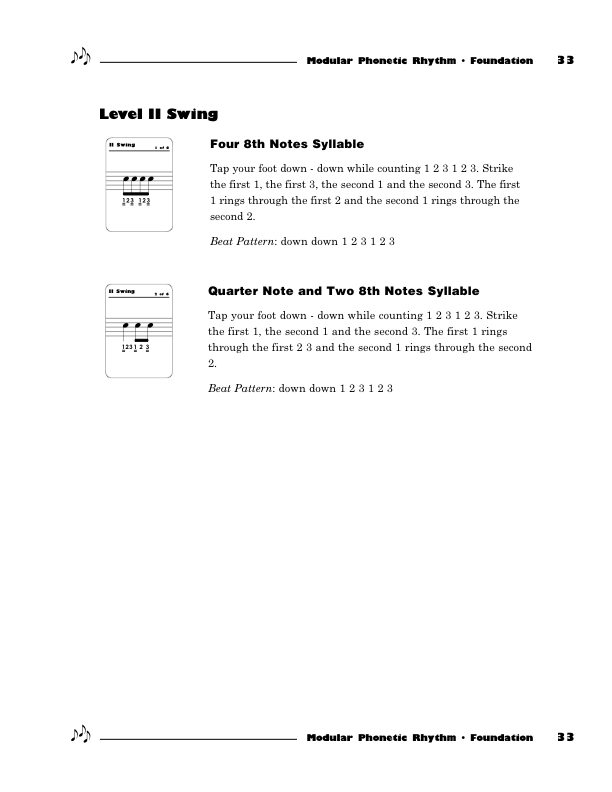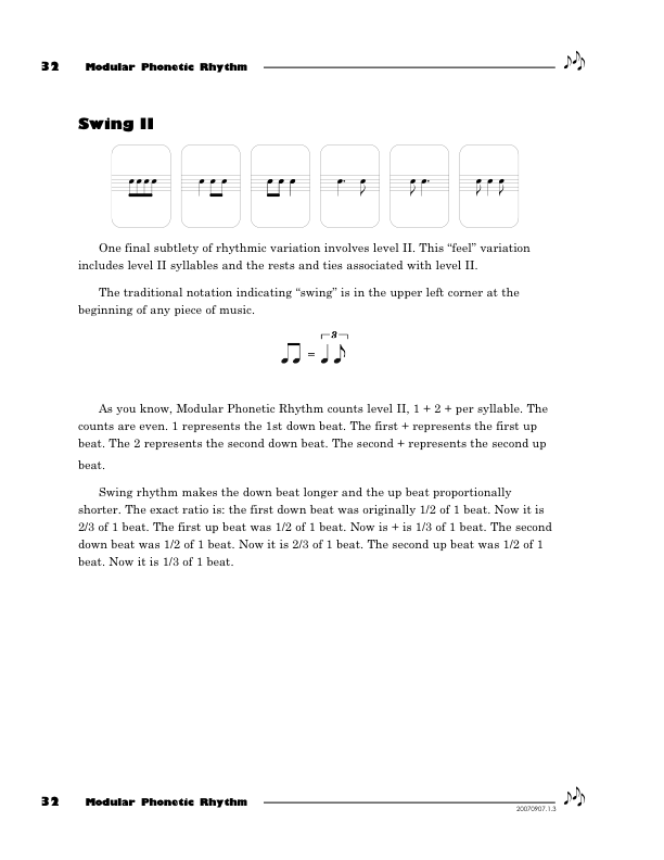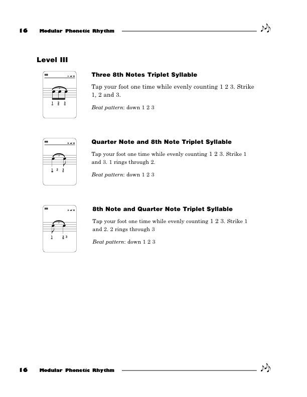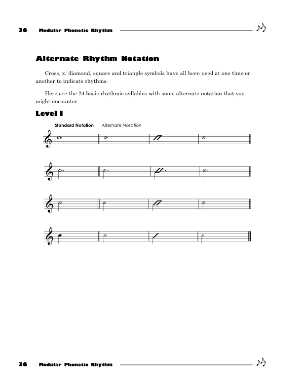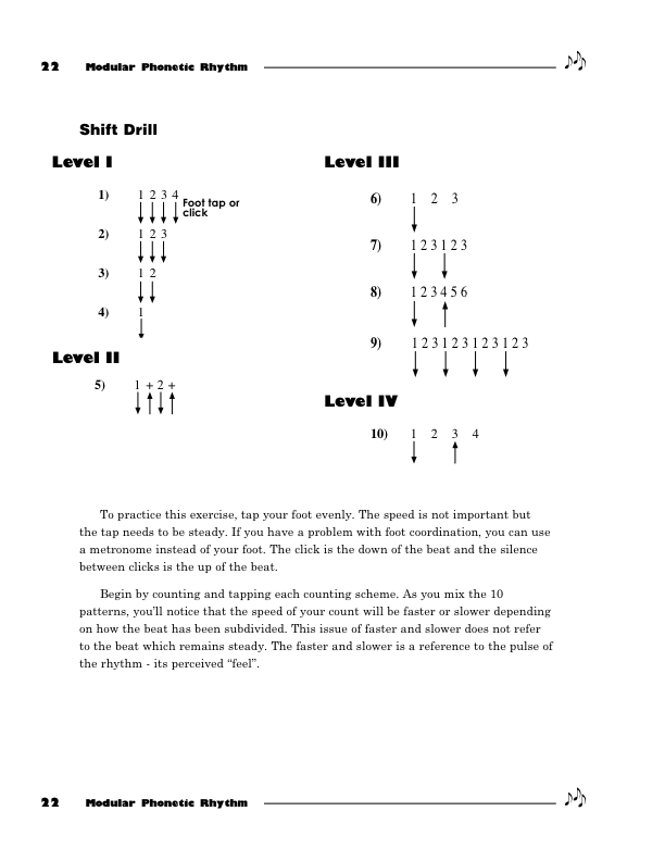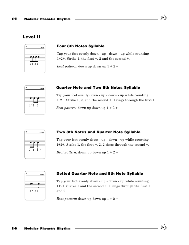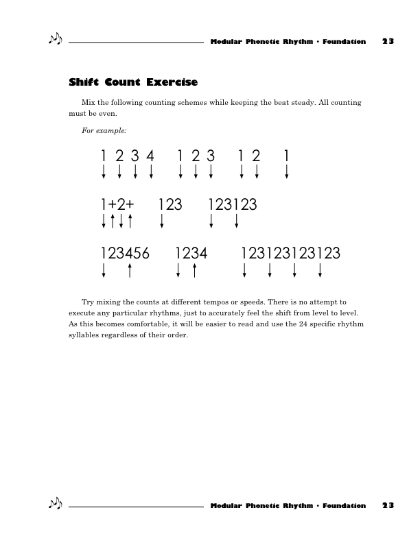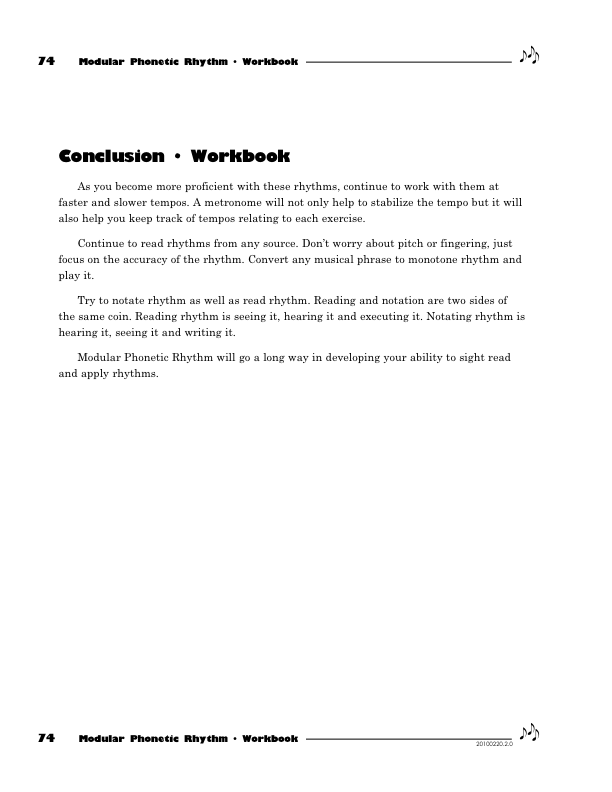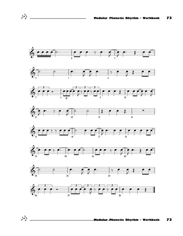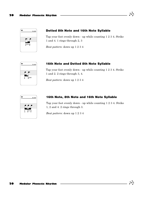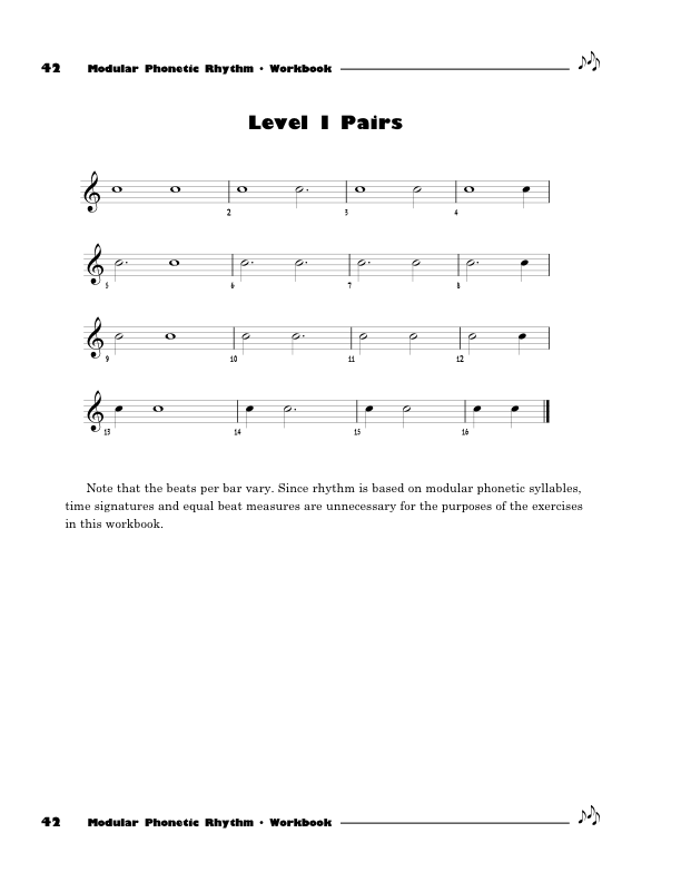 Modular Phonetic Rhythm represents a significant advance in the teaching and application of rhythm. Eliminating many inefficient aspects of rhythm education, Modular Phonetic Rhythm streamlines the traditional educational approach, resulting in a reflexive reaction to rhythm.