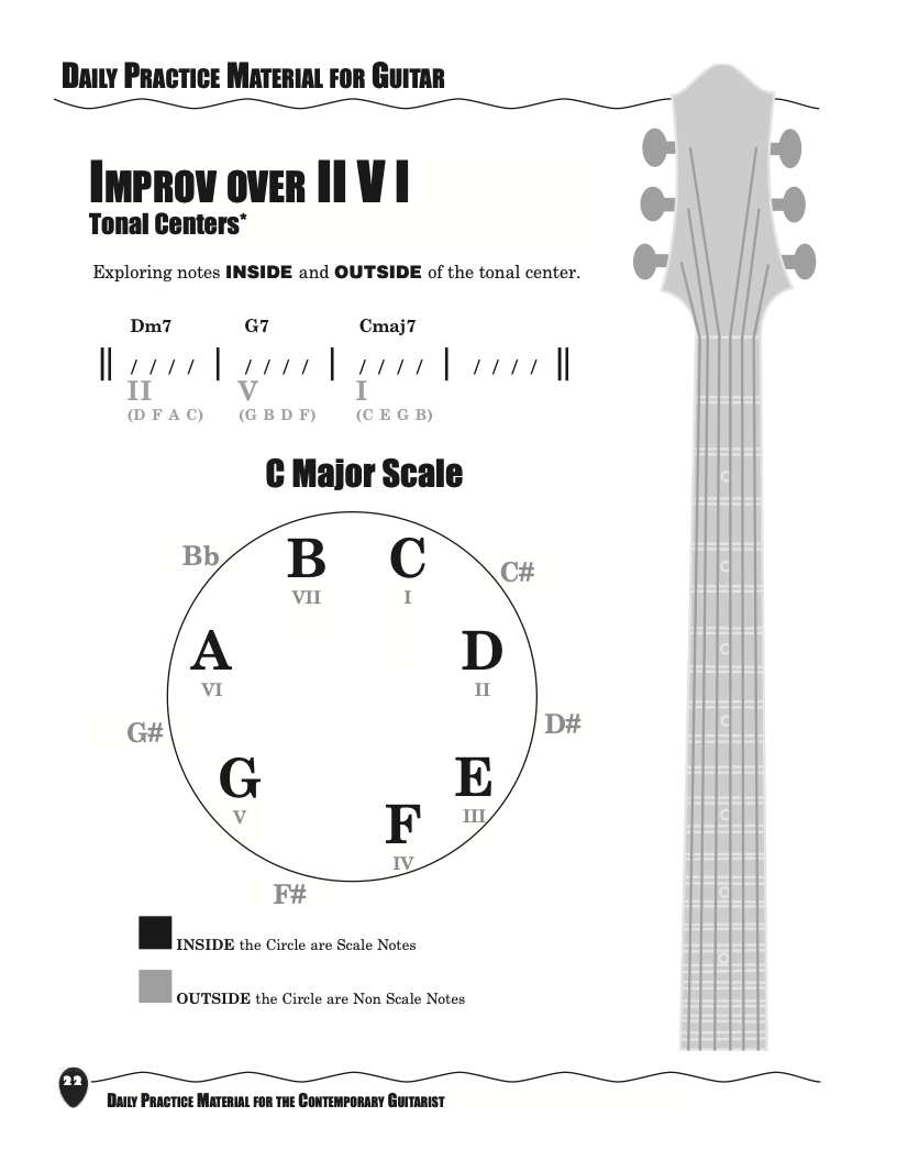 Daily Practice Material for the Contemporary Guitarist is an organized collection of daily practice and reference material for the contemporary ukulele player. This material can be used to develop the vocabulary and knowledge necessary for single note playing.