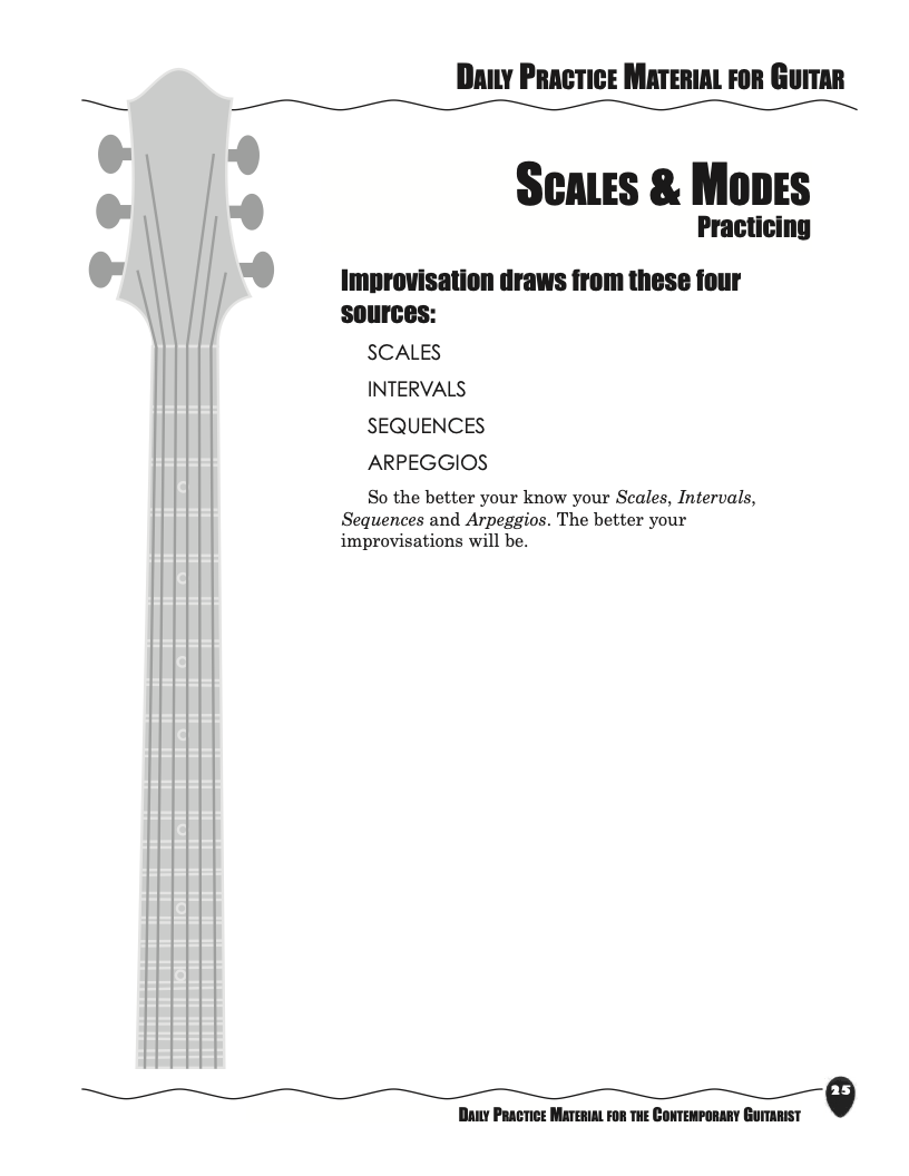 Material includes: Scales, Intervals, Arpeggios and Sequences, the source material for improvisation. (Product Code: PMG1)