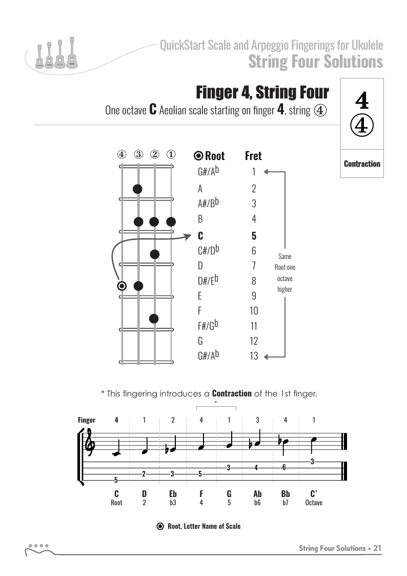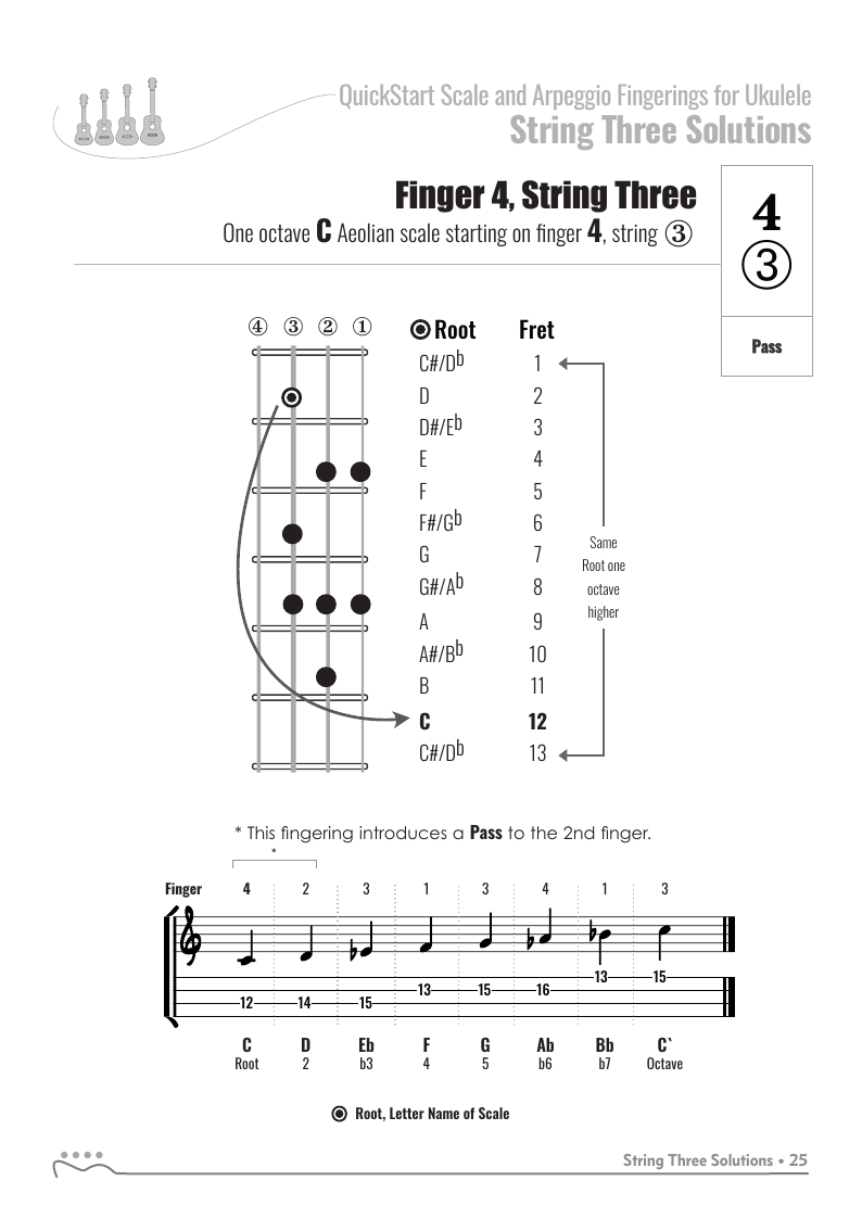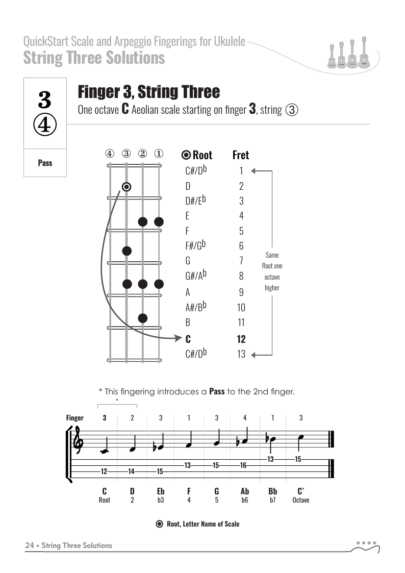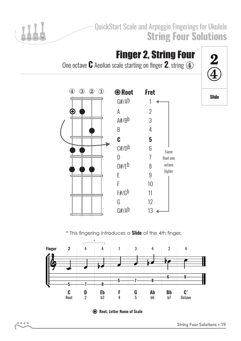 QuickStart Scale Fingerings for Ukulele, C Tuning - Aeolian Scale.