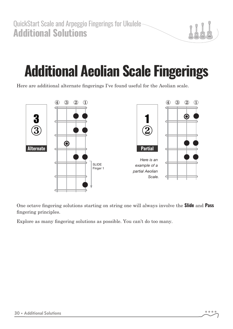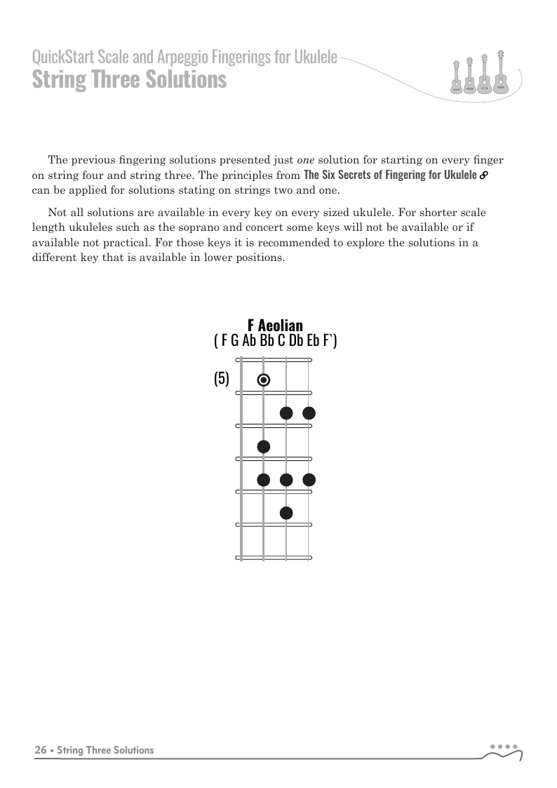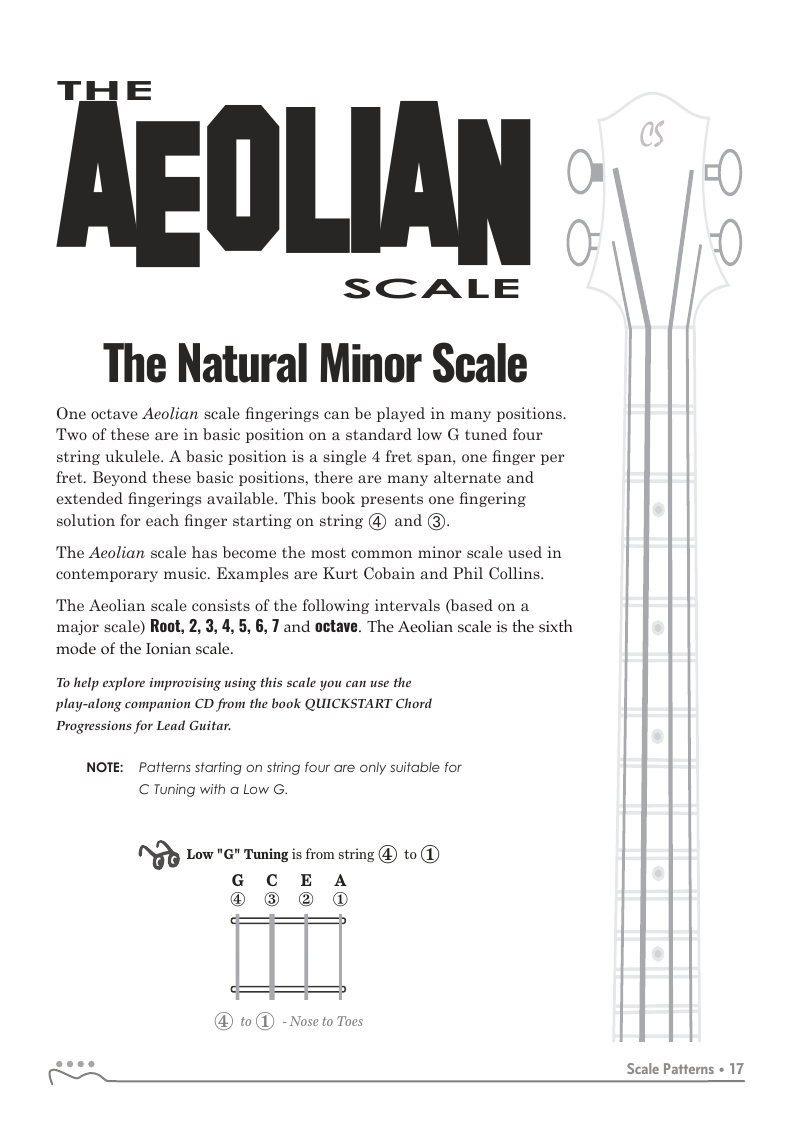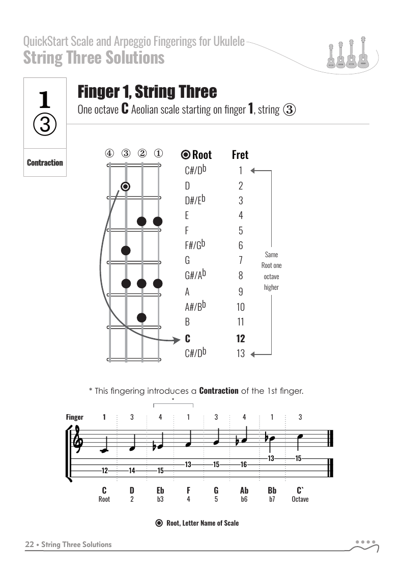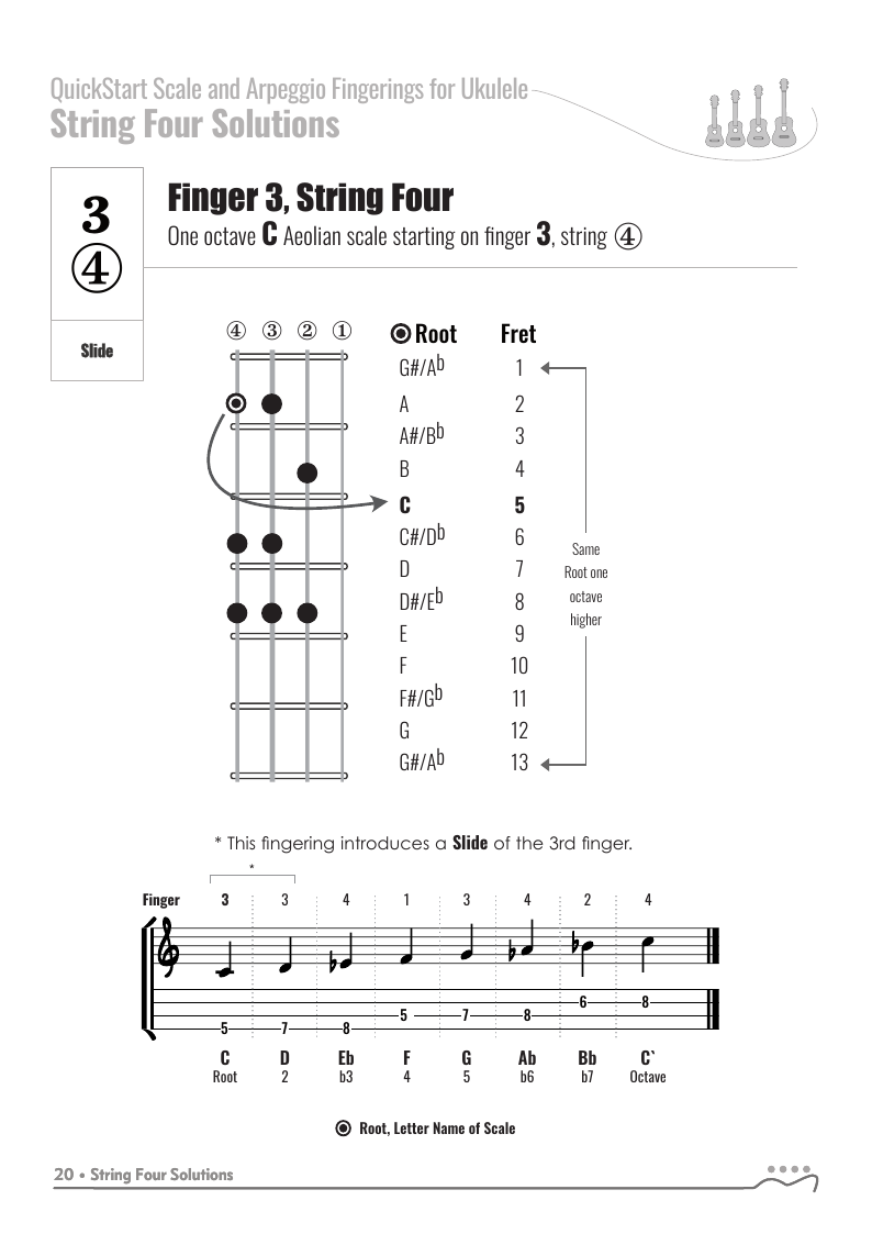 QuickStart Scale Fingerings for Ukulele, C Tuning - Aeolian Scale.