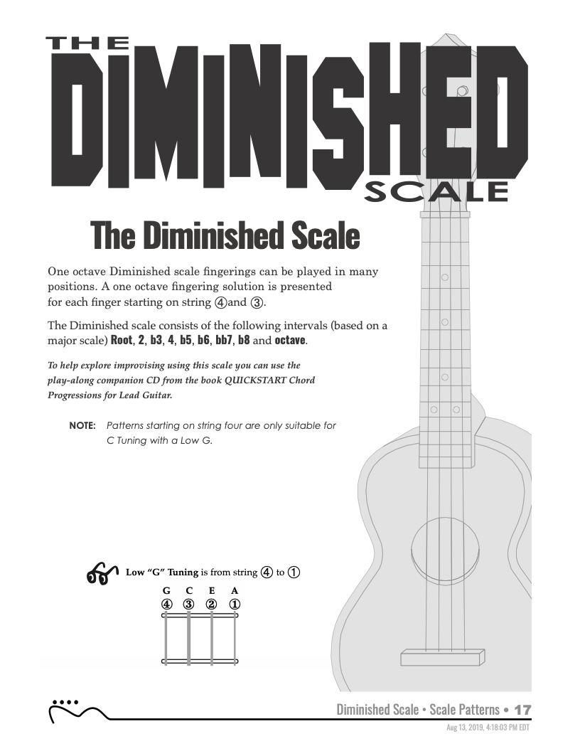 The Diminished scale is a traditional scale used in a wide variety of music. This traditional scale is covered in all keys with one octave scale fingerings starting on any finger. Tunings: C with low or high G - (GCEA or gCEA).