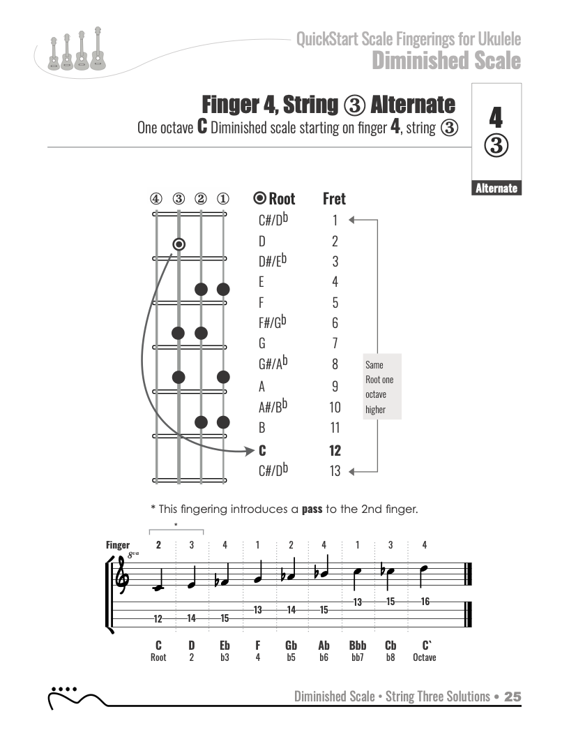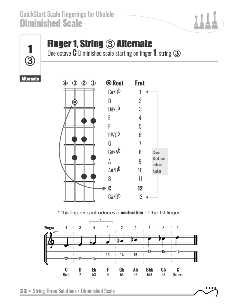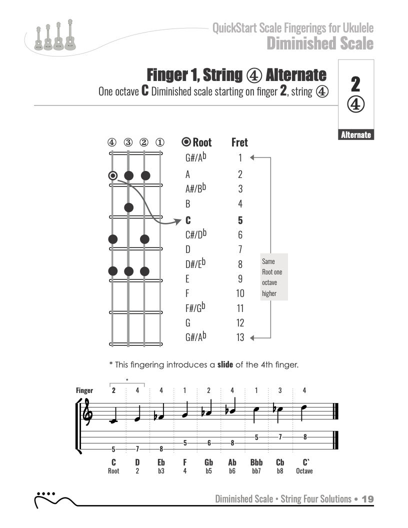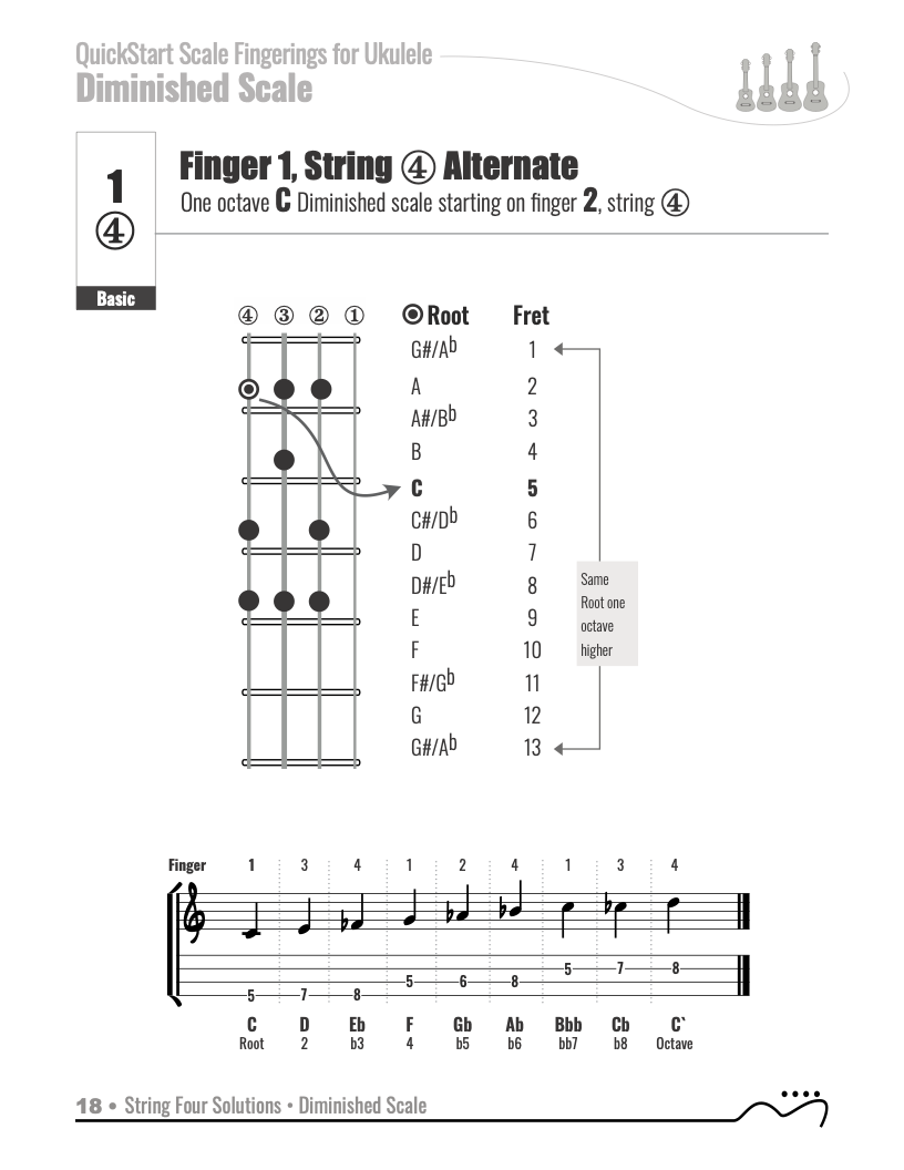 QuickStart Scale Fingerings for Ukulele, C Tuning - Diminished Scale.