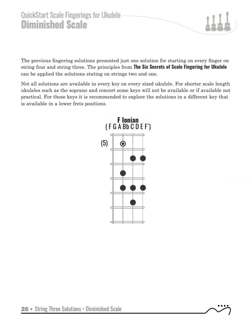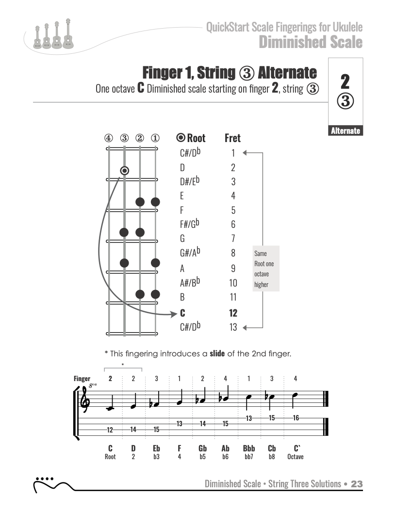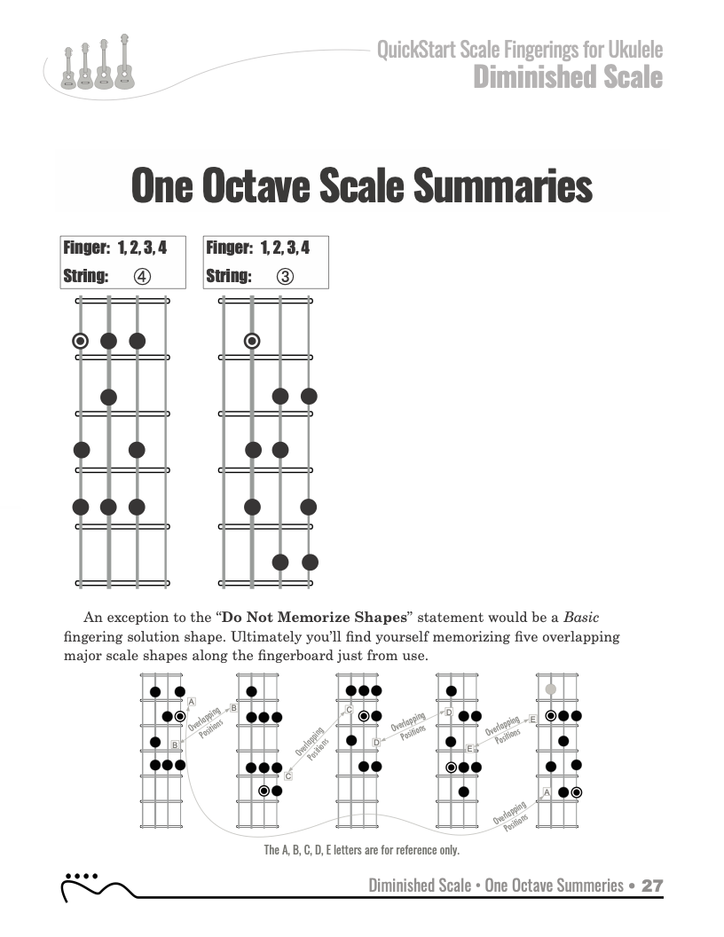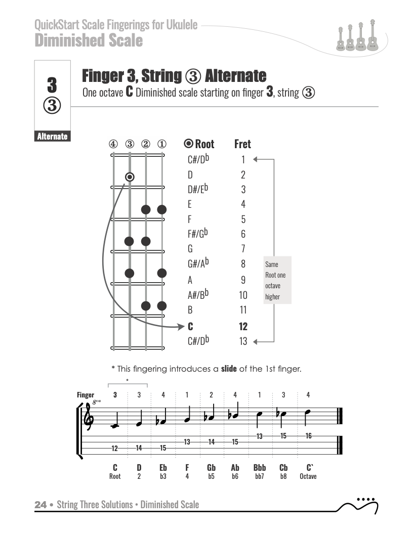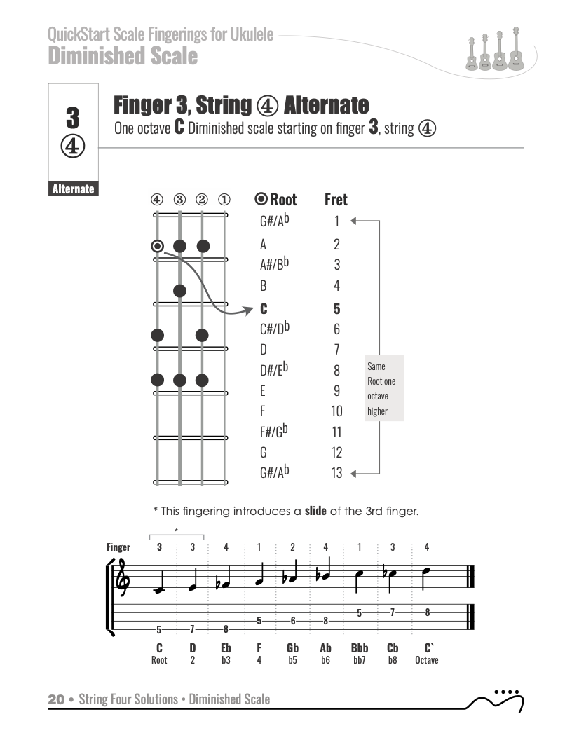 QuickStart Scale Fingerings for Ukulele, C Tuning - Diminished Scale.