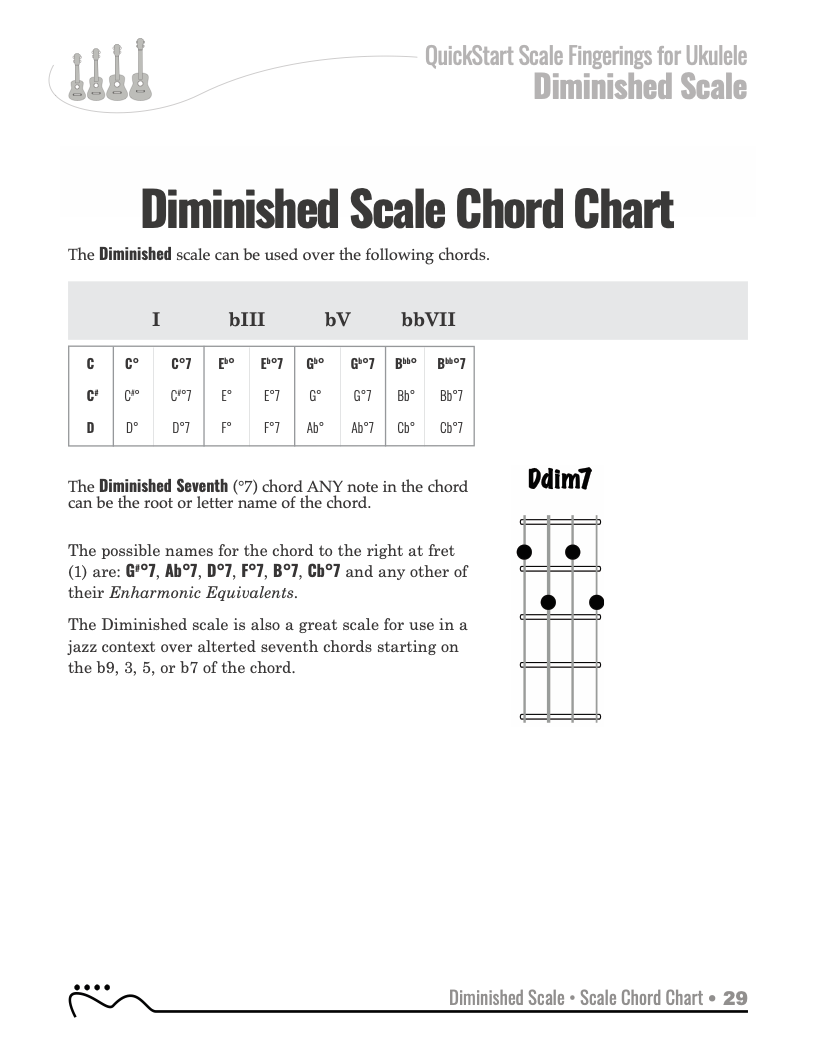 QuickStart Scale Fingerings for Ukulele, C Tuning - Diminished Scaleon: Bluesky • facebook • twitter (X)