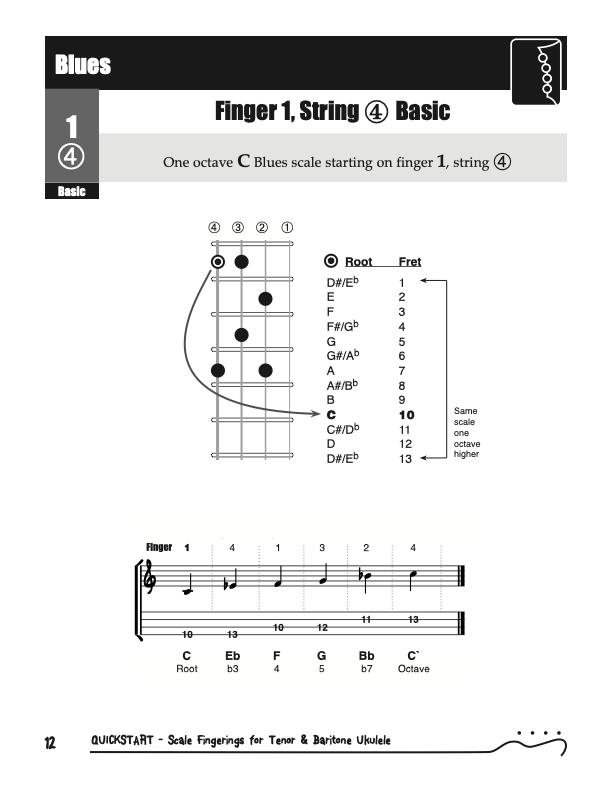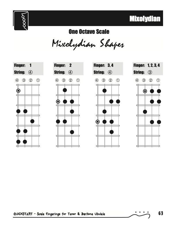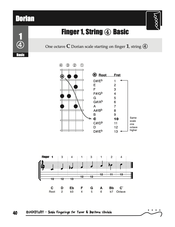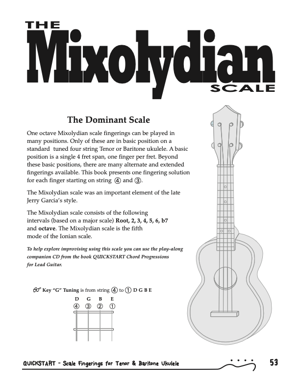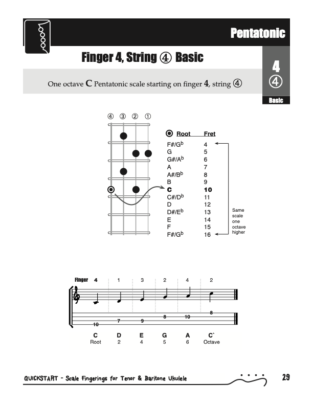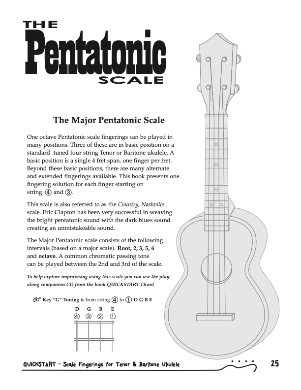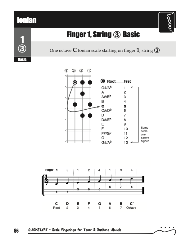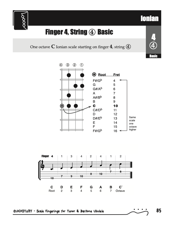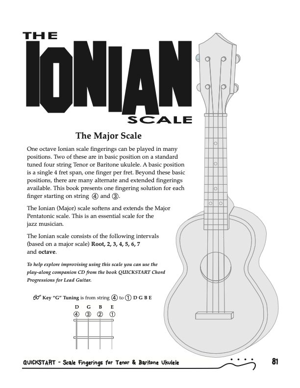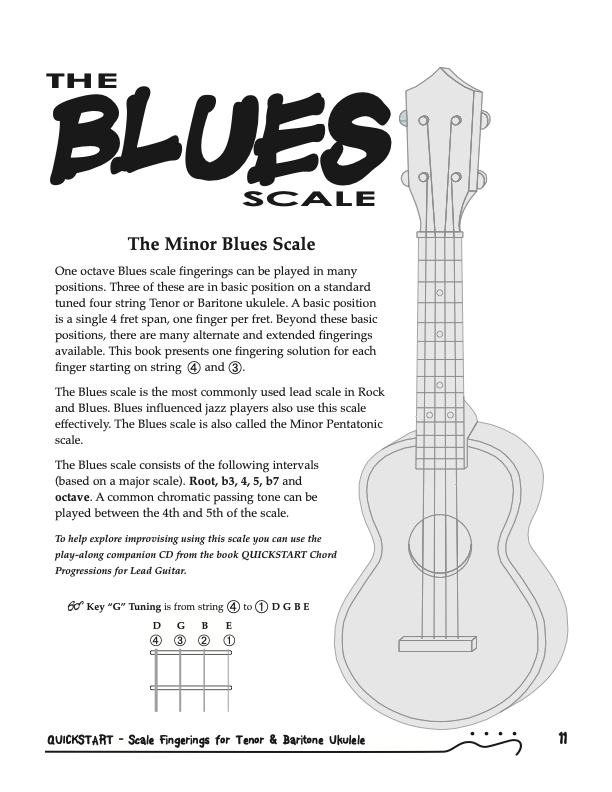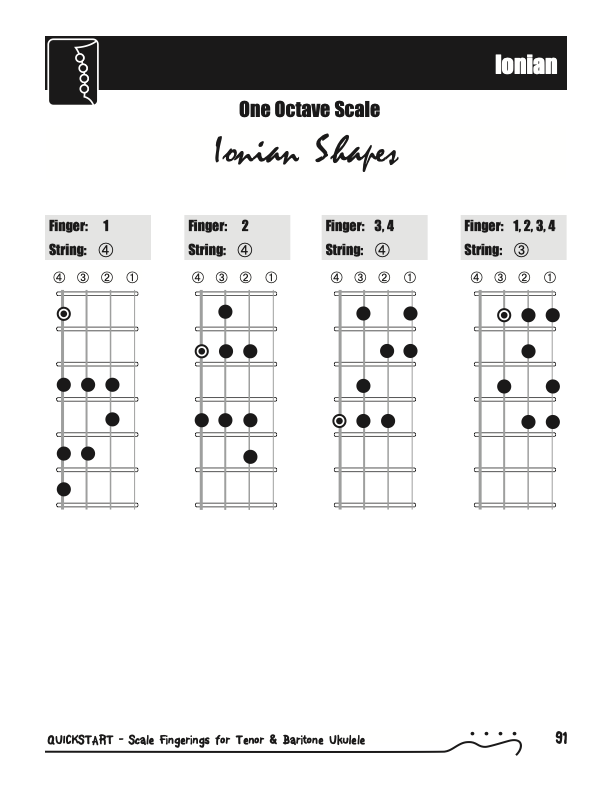 QuickStartScale Fingerings for Tenor and Baritone Ukulele, Volume I, G Tuning.