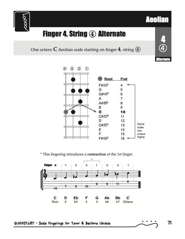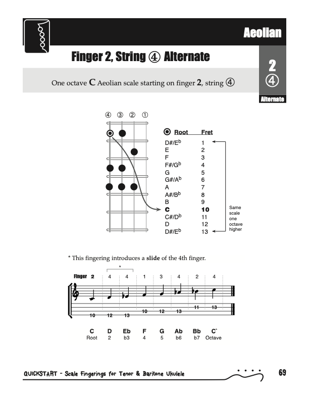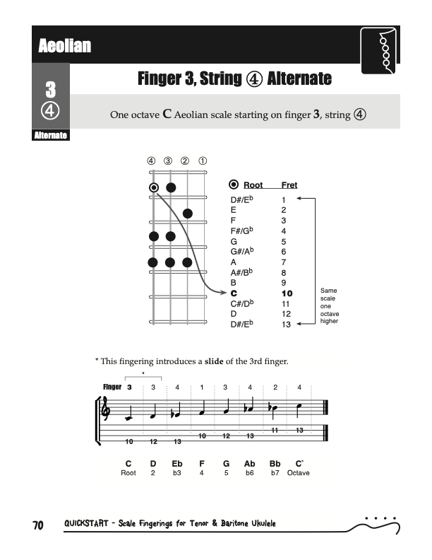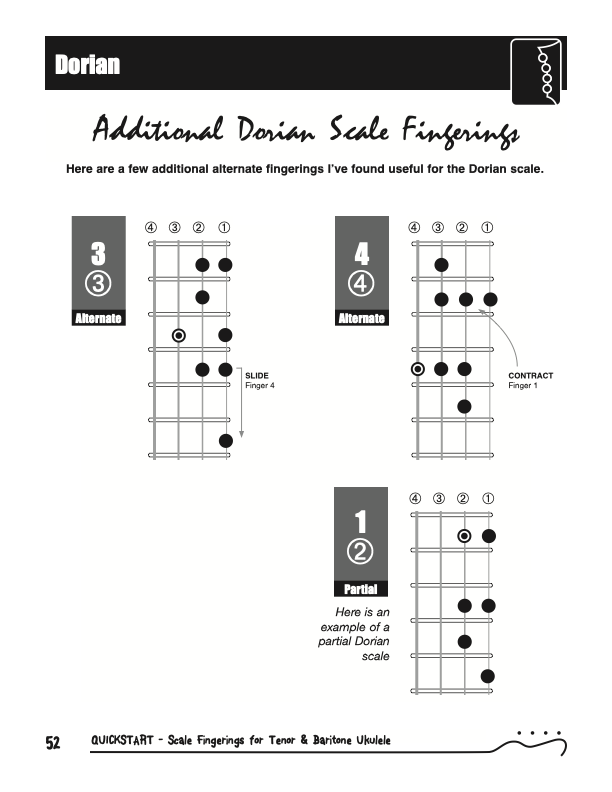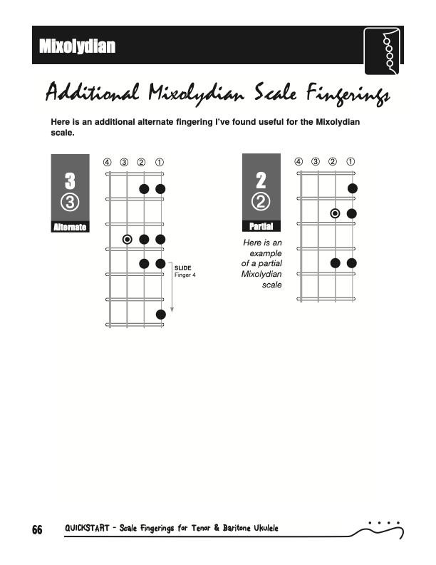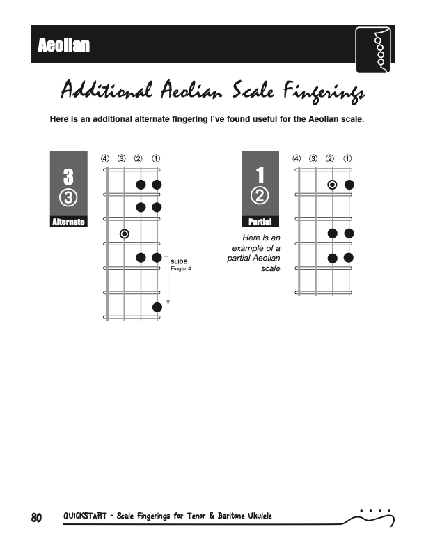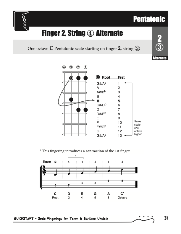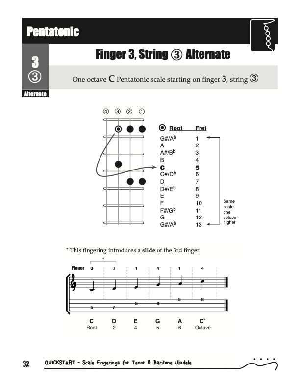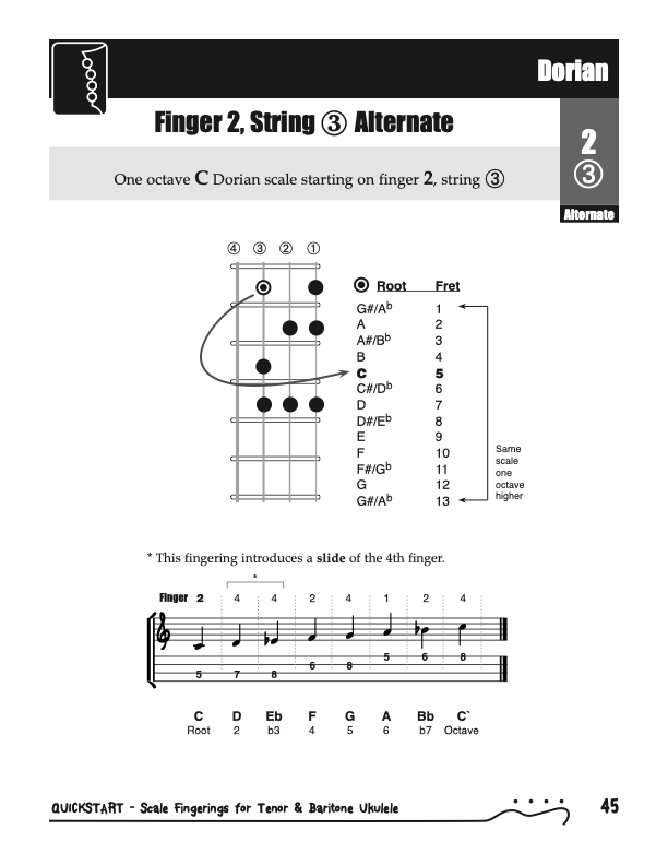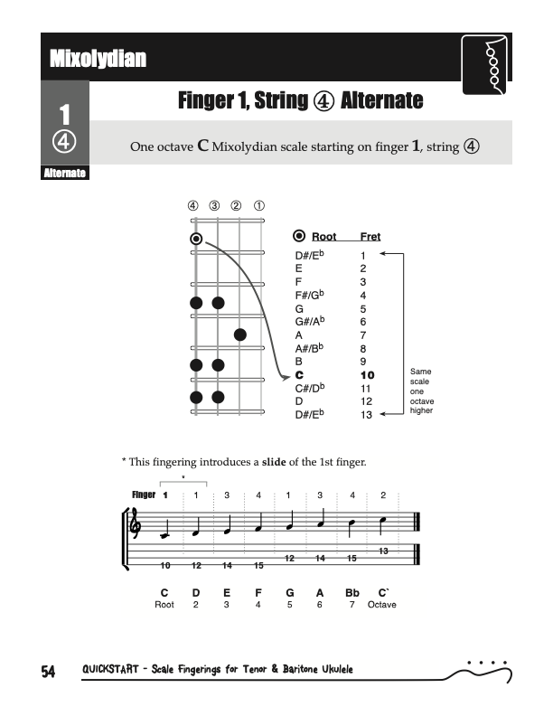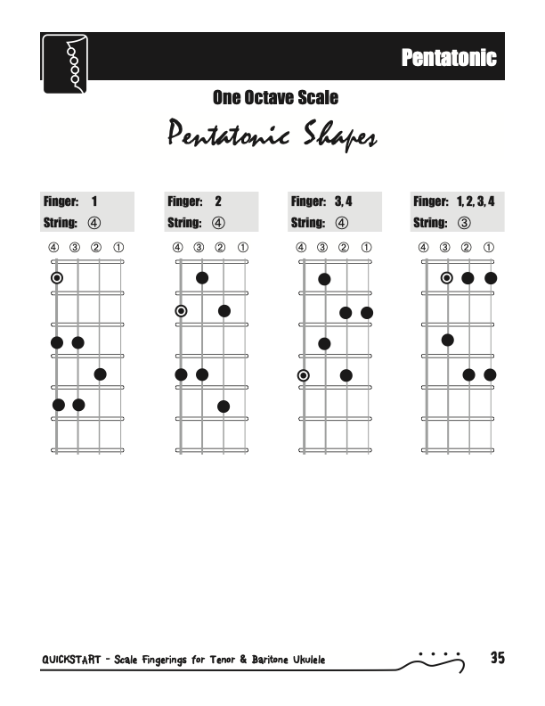 QuickStartScale Fingerings for Tenor and Baritone Ukulele, Volume I, G Tuning.