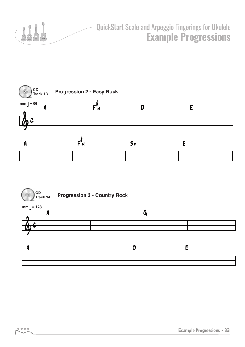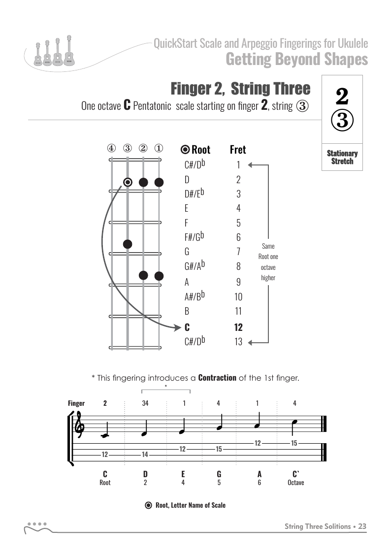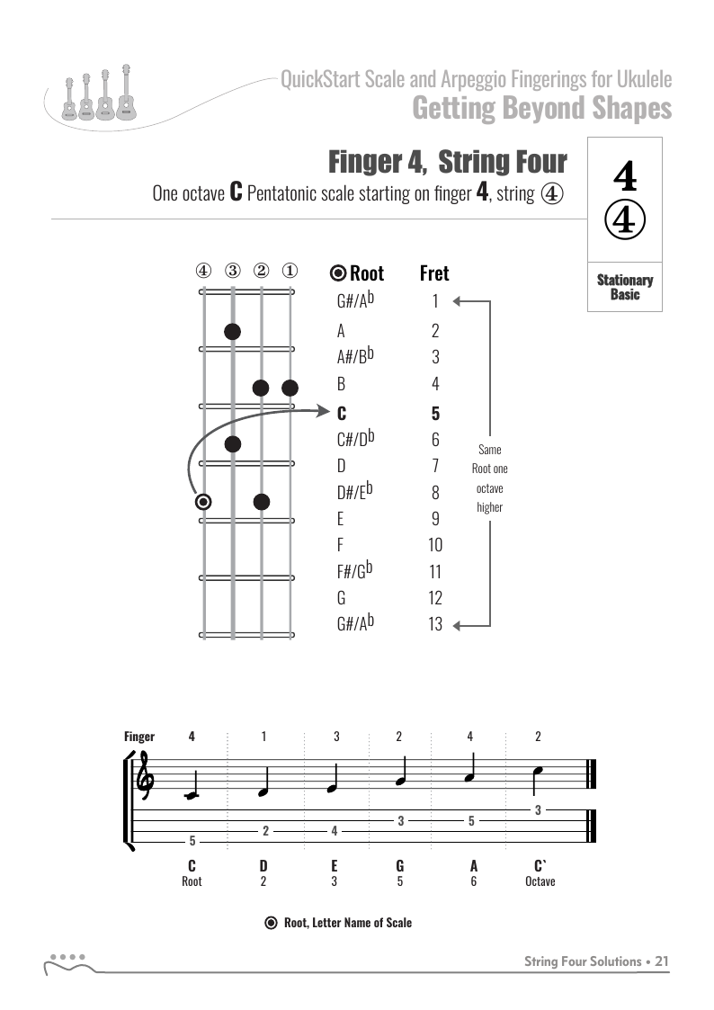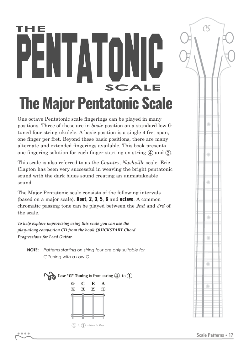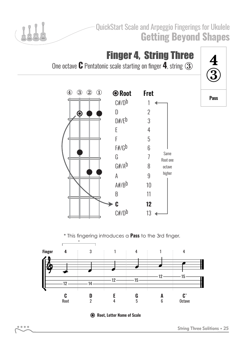 QUICKSTART – Scale Fingerings for Ukulele is a highly organized, efficient system of scale fingerings. Each fingering pattern is shown with a fingerboard shape, TAB and standard music notation. Related chords are also explained for each scale.
