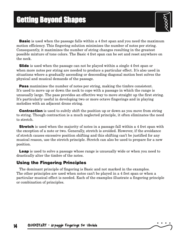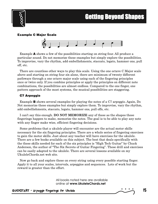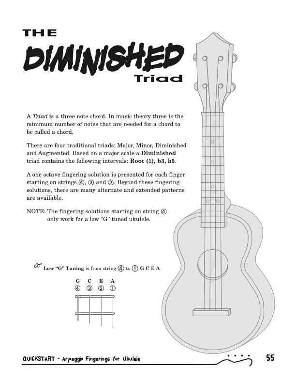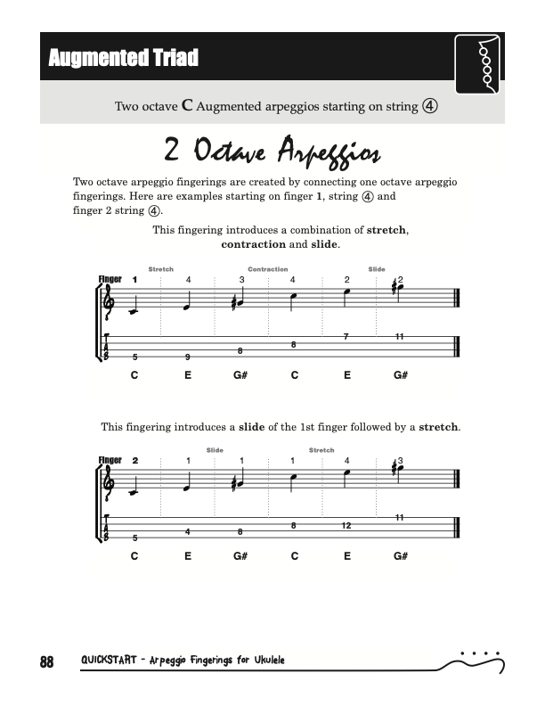 QuickStart Scale Arpeggio Fingerings for Ukulele - Triads is a concise, well organized book ideal for any ukulele player beginning to explore the ukulele's full potential as a musical instrument. Arpeggio Fingerings for Ukulele - Triads keeps a sharp focus on essential arpeggios and their fingerings. All material is covered in every key.Master these fingerings and unlock your potential for improvisation.