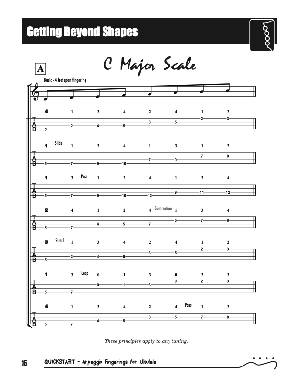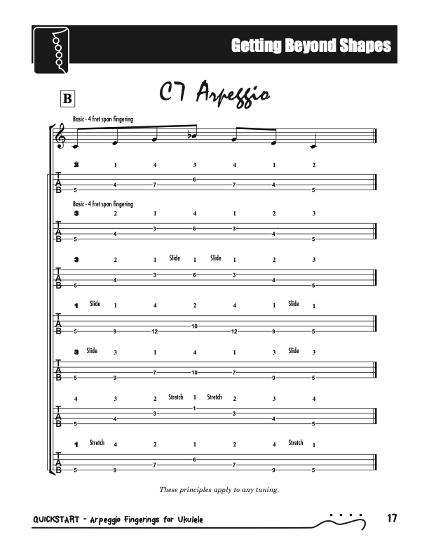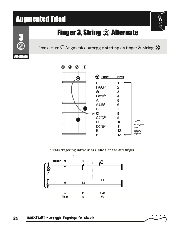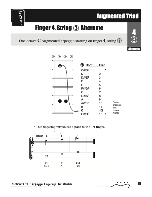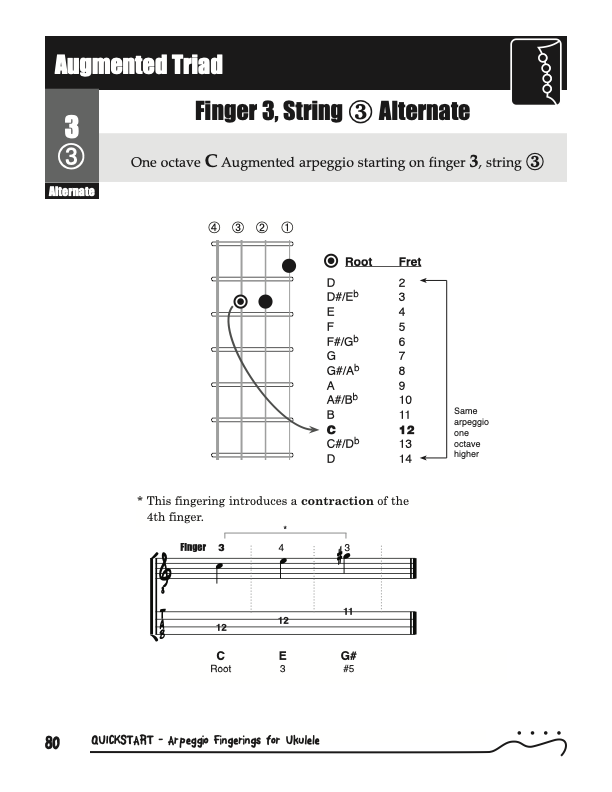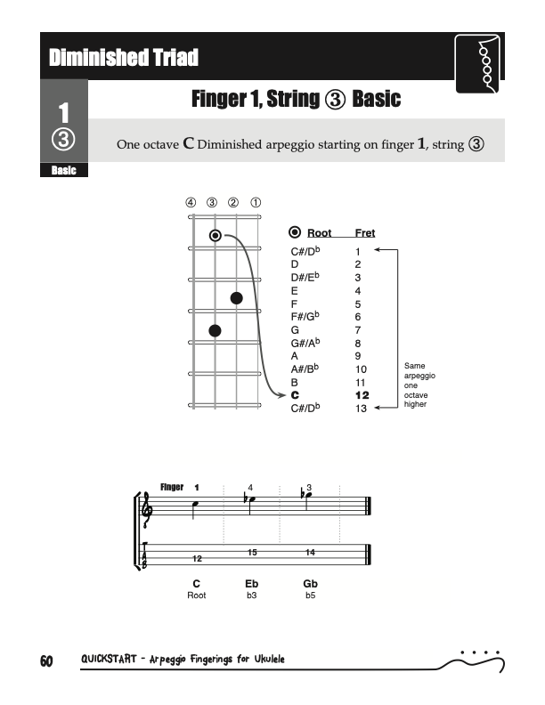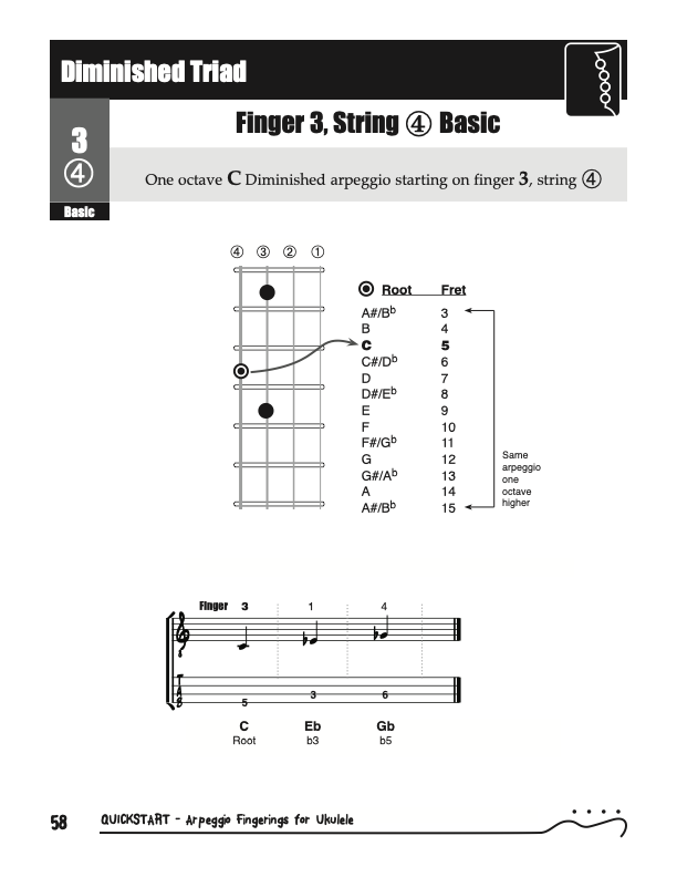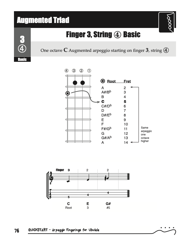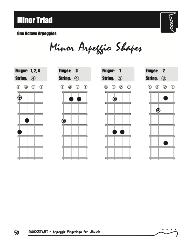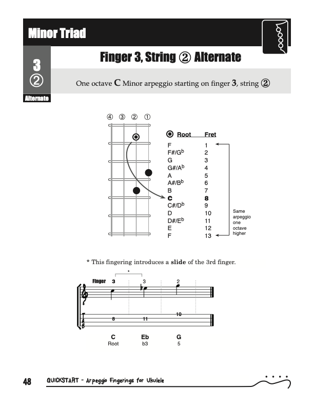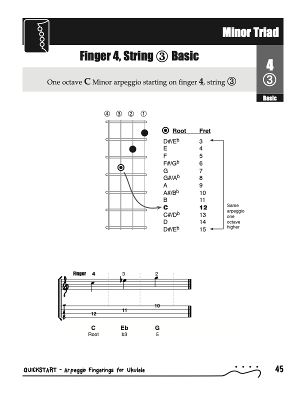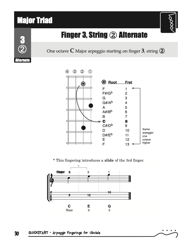 QuickStart Arpeggio Fingerings for Ukulele, Triads C Tuning.