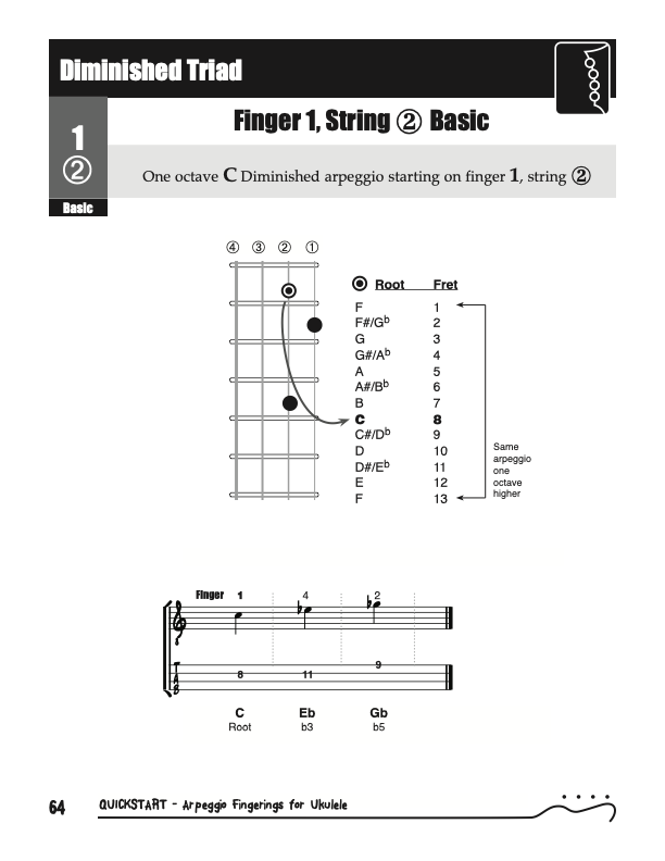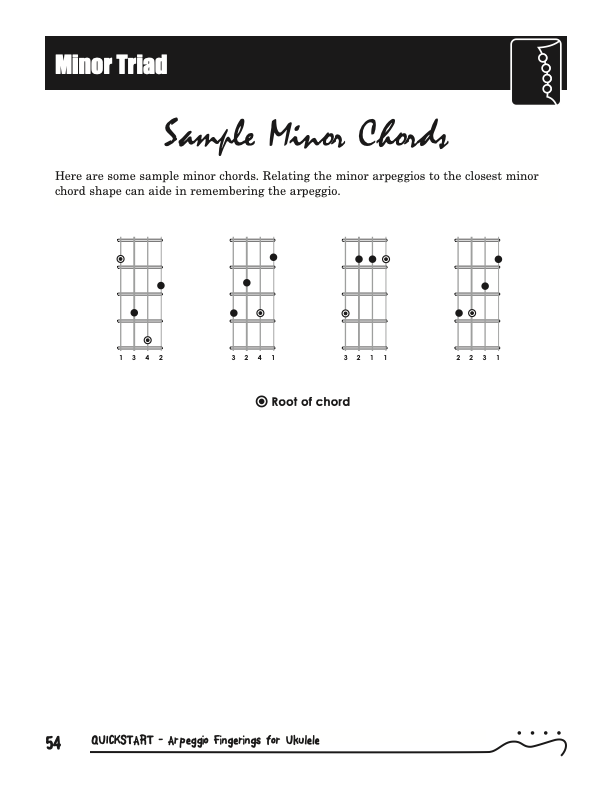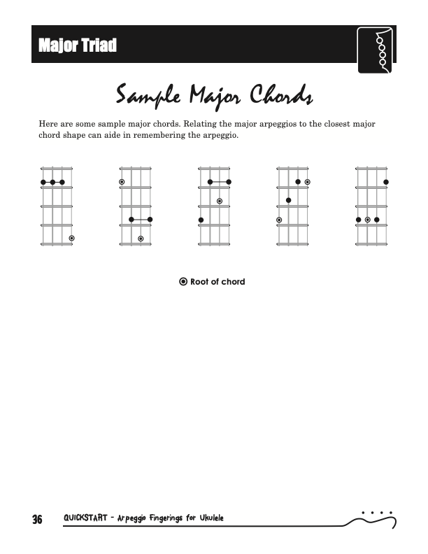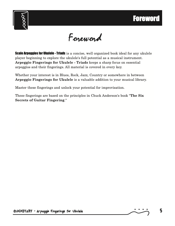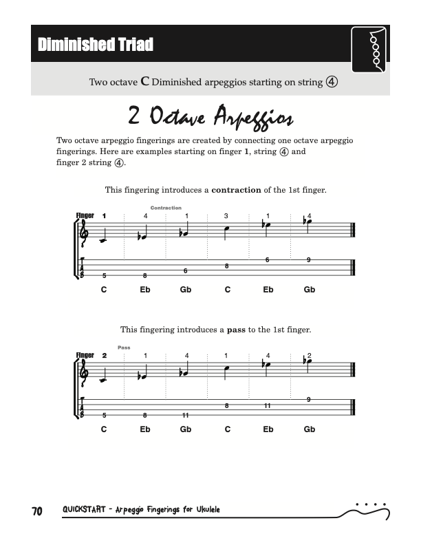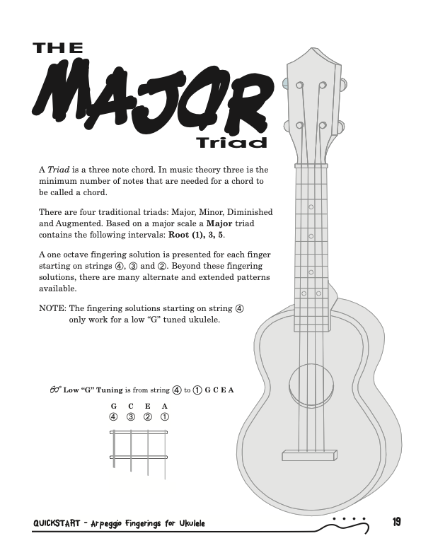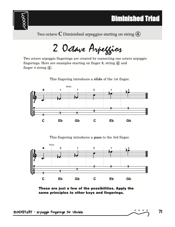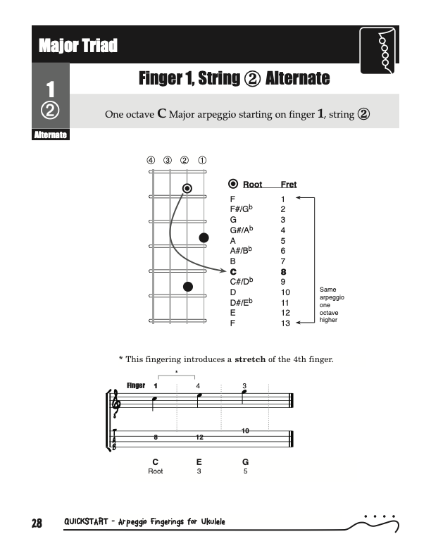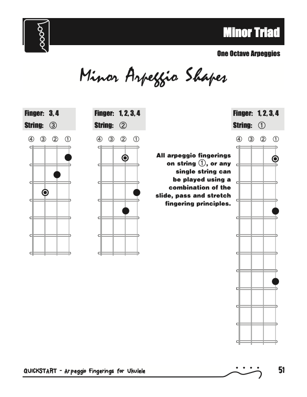 QuickStart Scale Arpeggio Fingerings for Ukulele - Triads is a concise, well organized book ideal for any ukulele player beginning to explore the ukulele's full potential as a musical instrument. Arpeggio Fingerings for Ukulele - Triads keeps a sharp focus on essential arpeggios and their fingerings. All material is covered in every key.