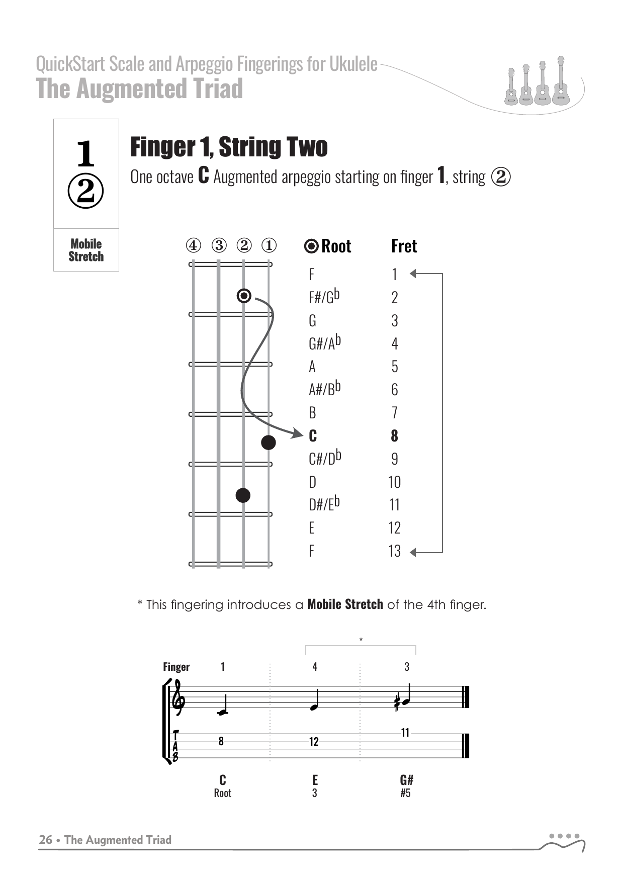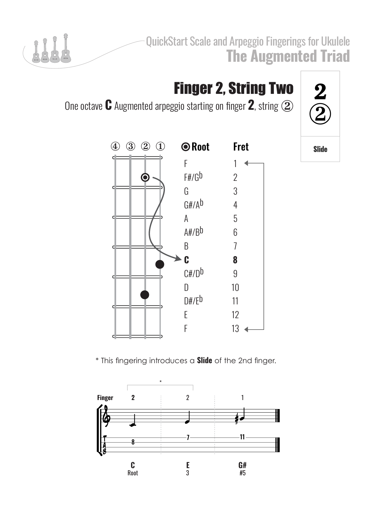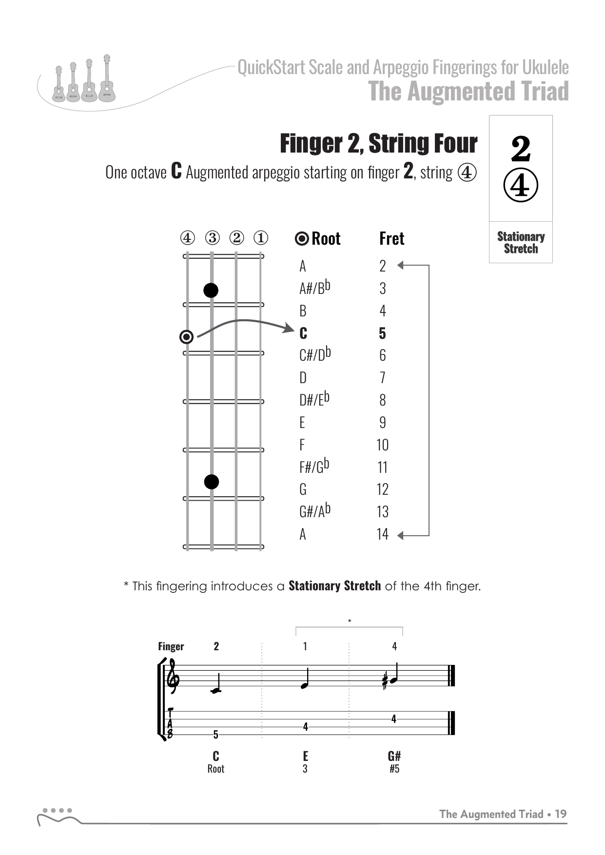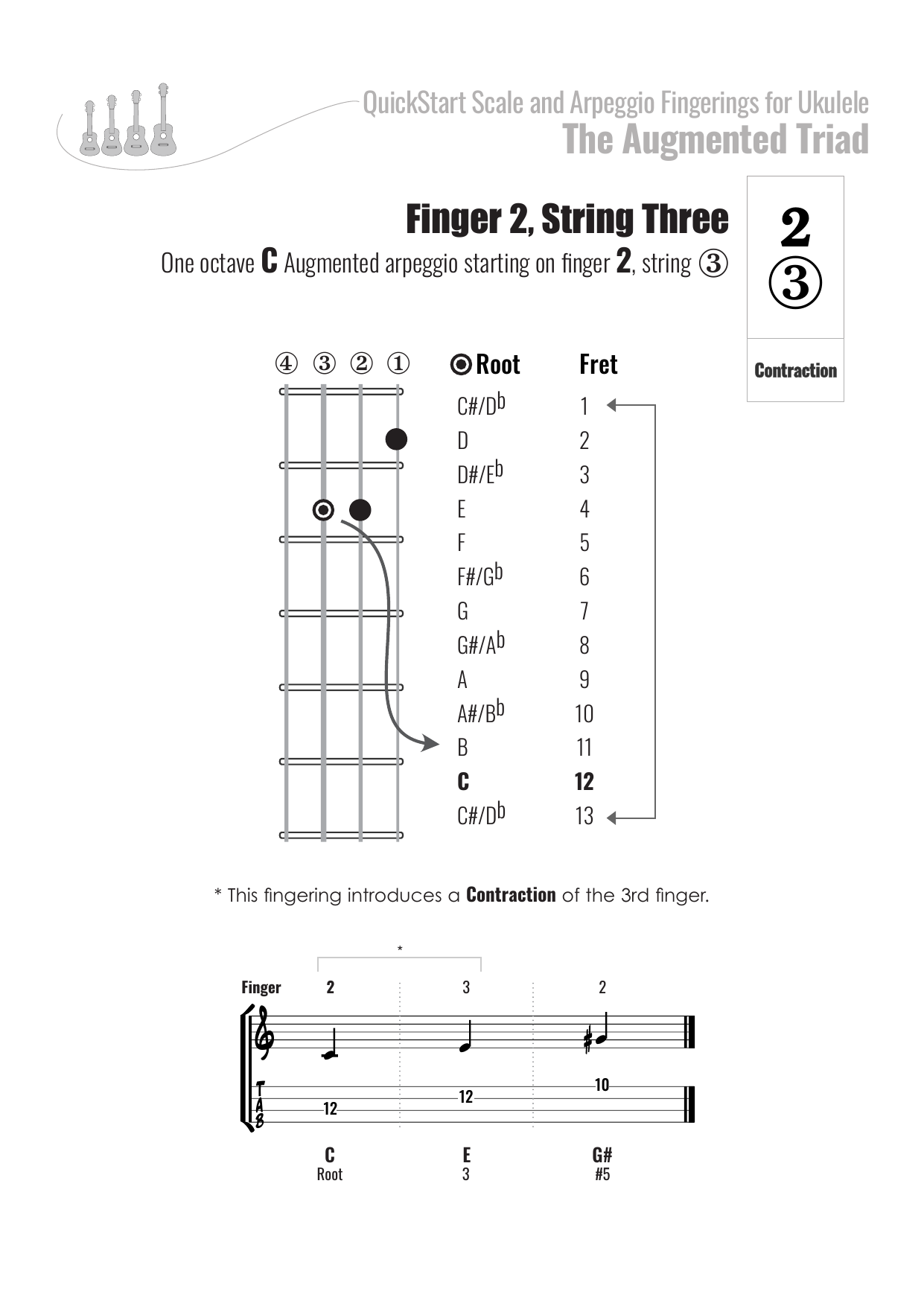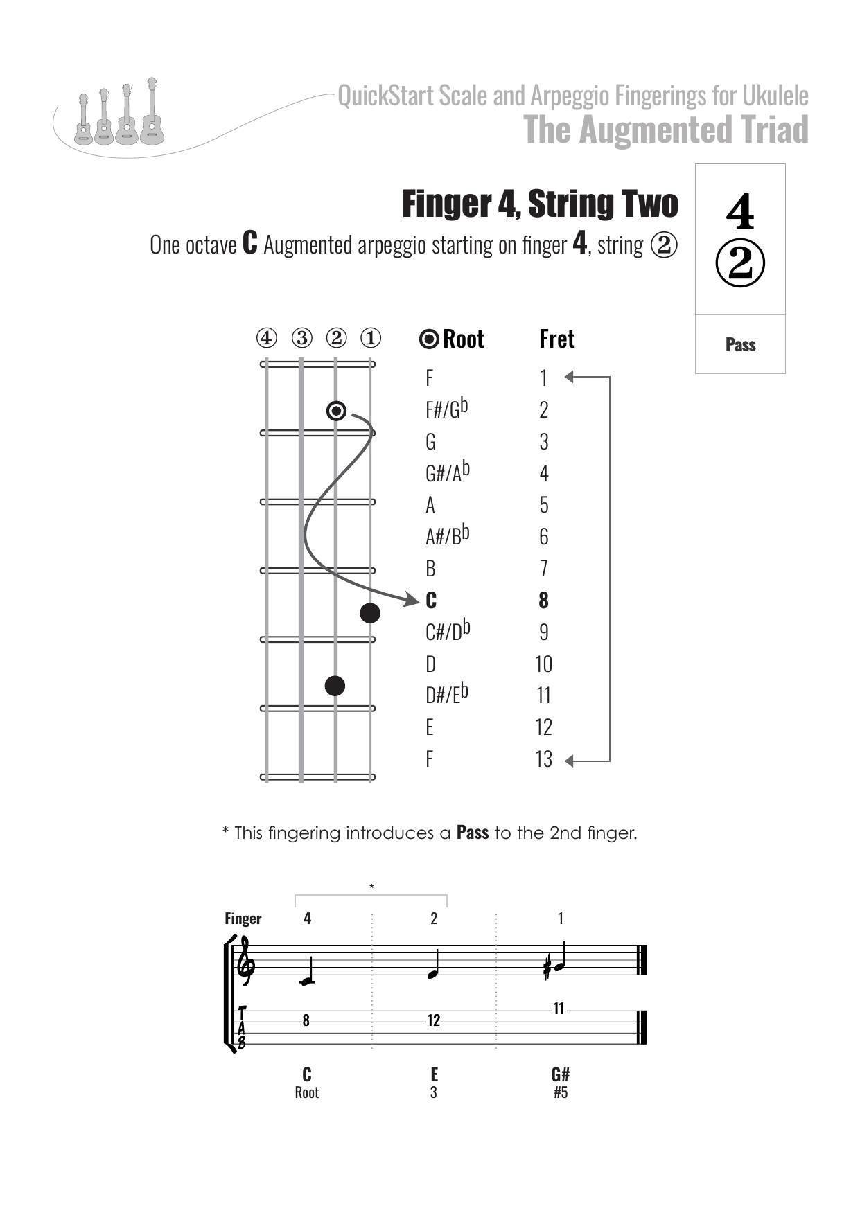 QuickStart Arpeggio Fingerings for Ukulele, C Tuning - Augmented Triad.