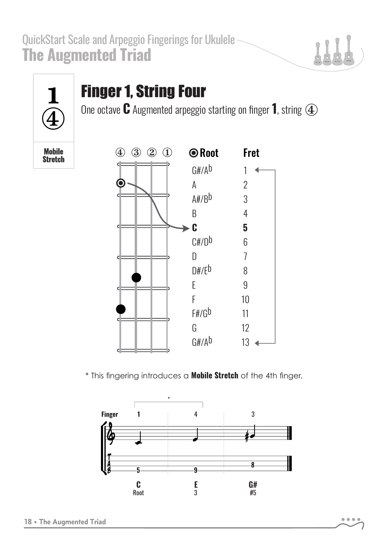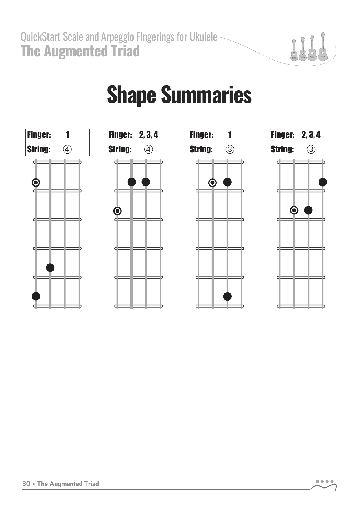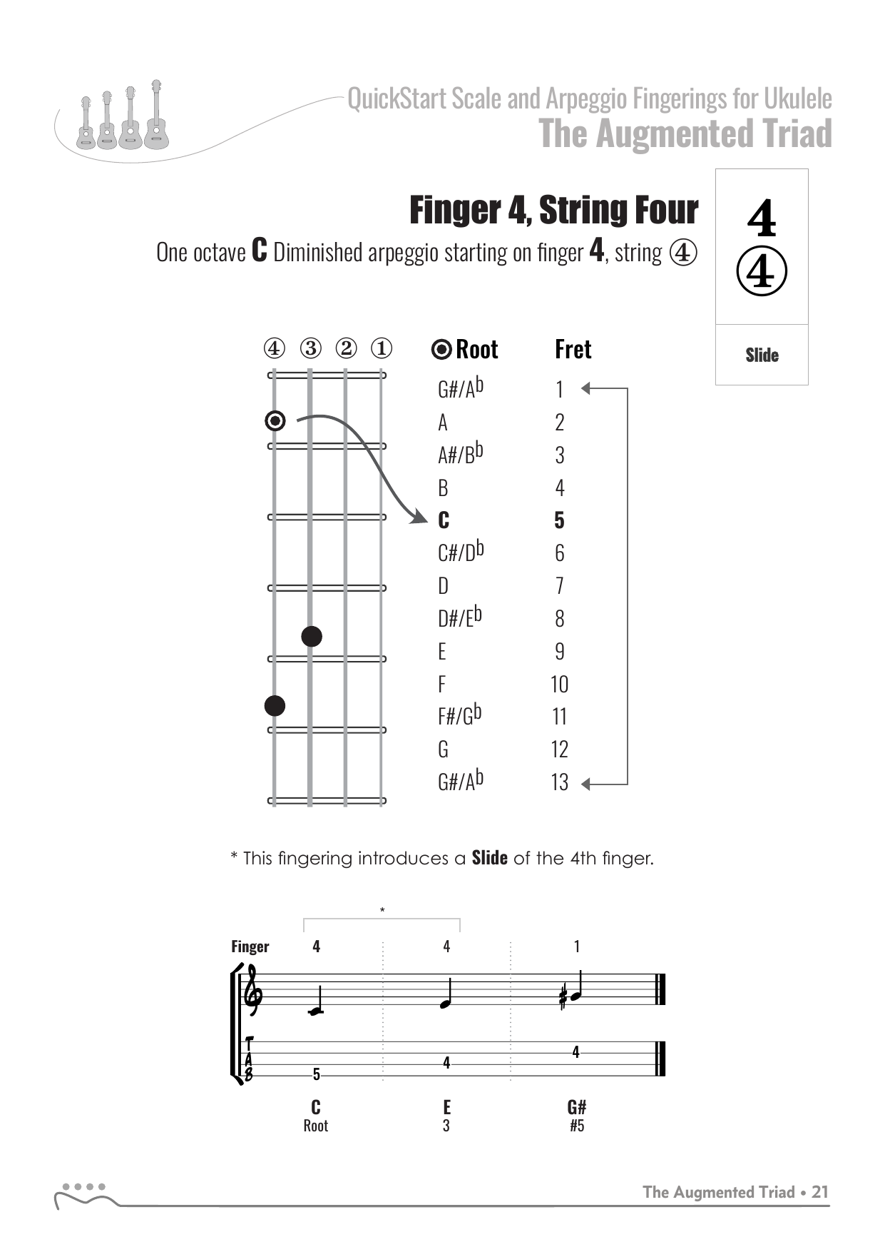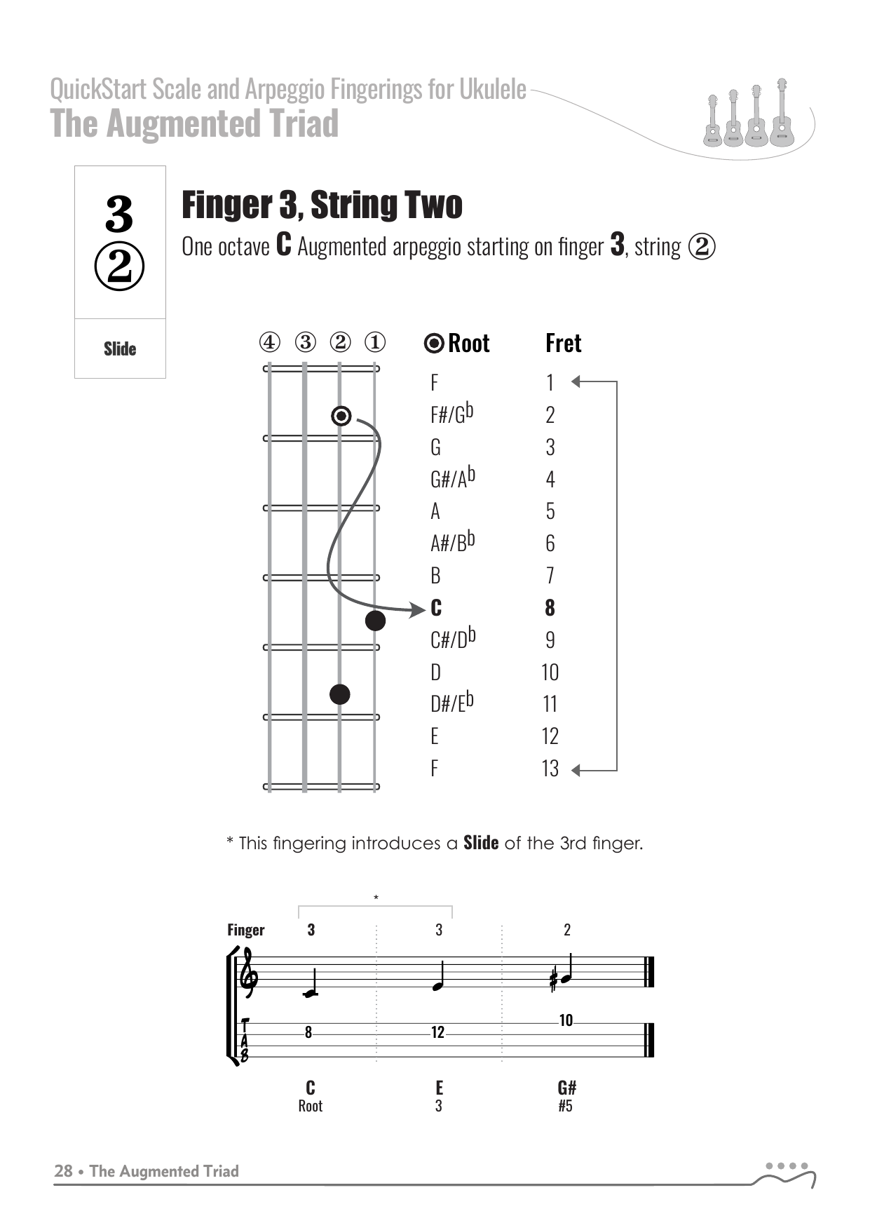 QuickStart Arpeggio Fingerings for Ukulele, C Tuning - Augmented Triad.