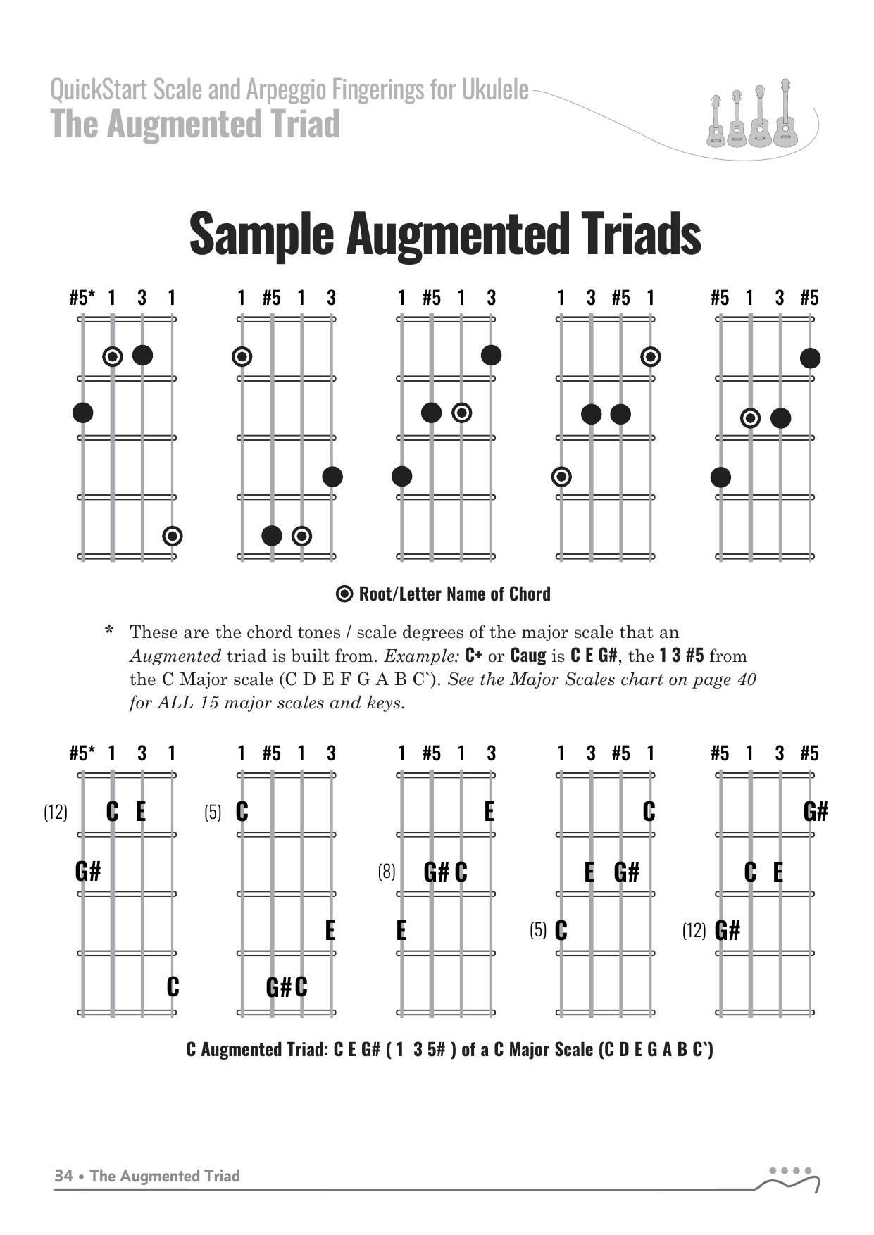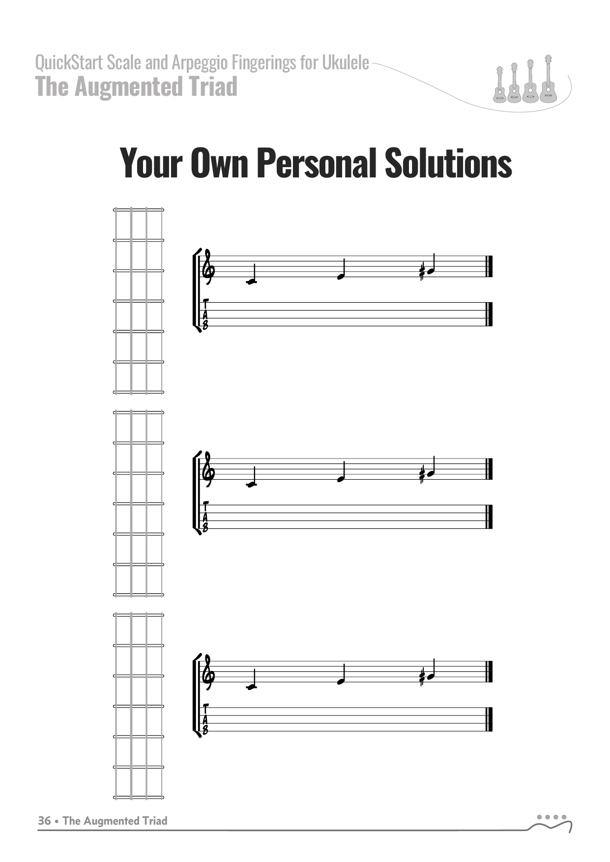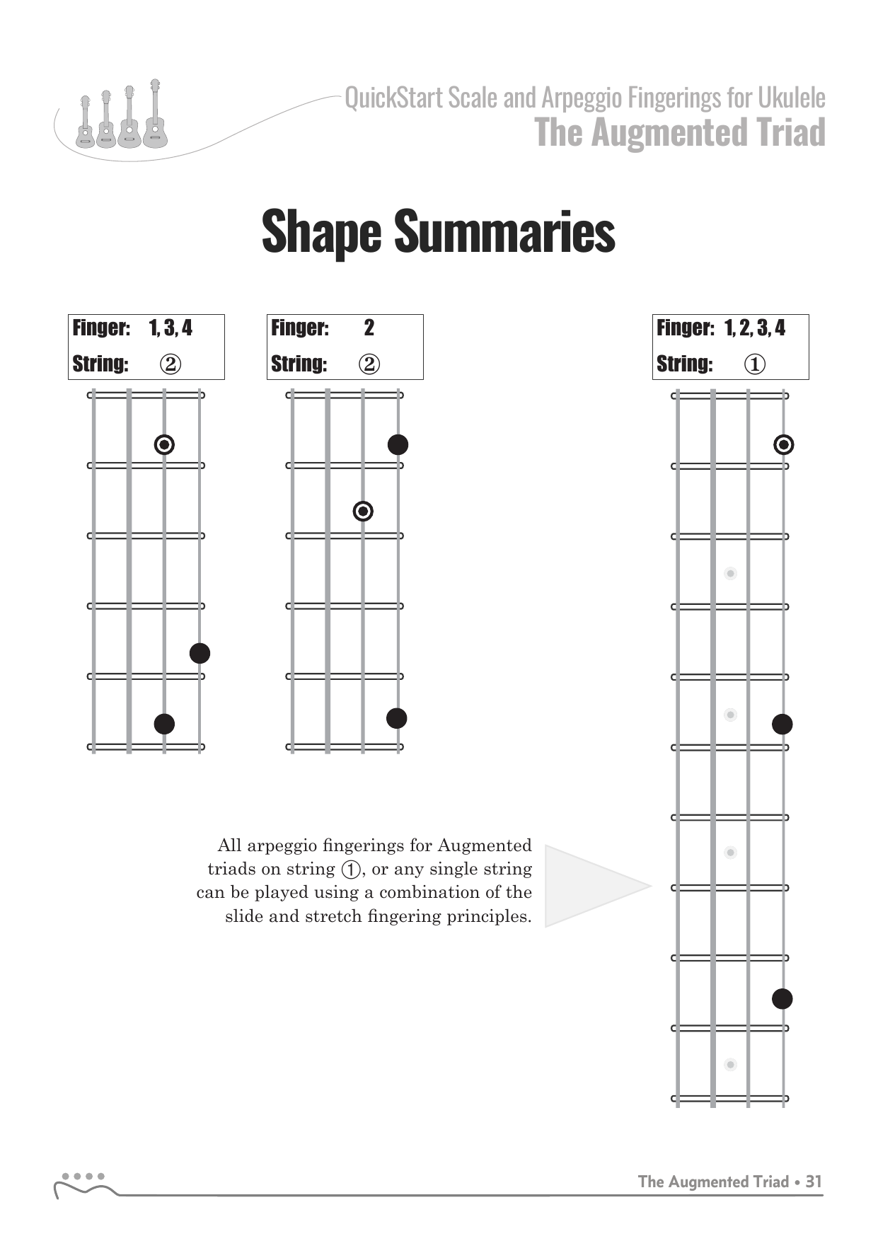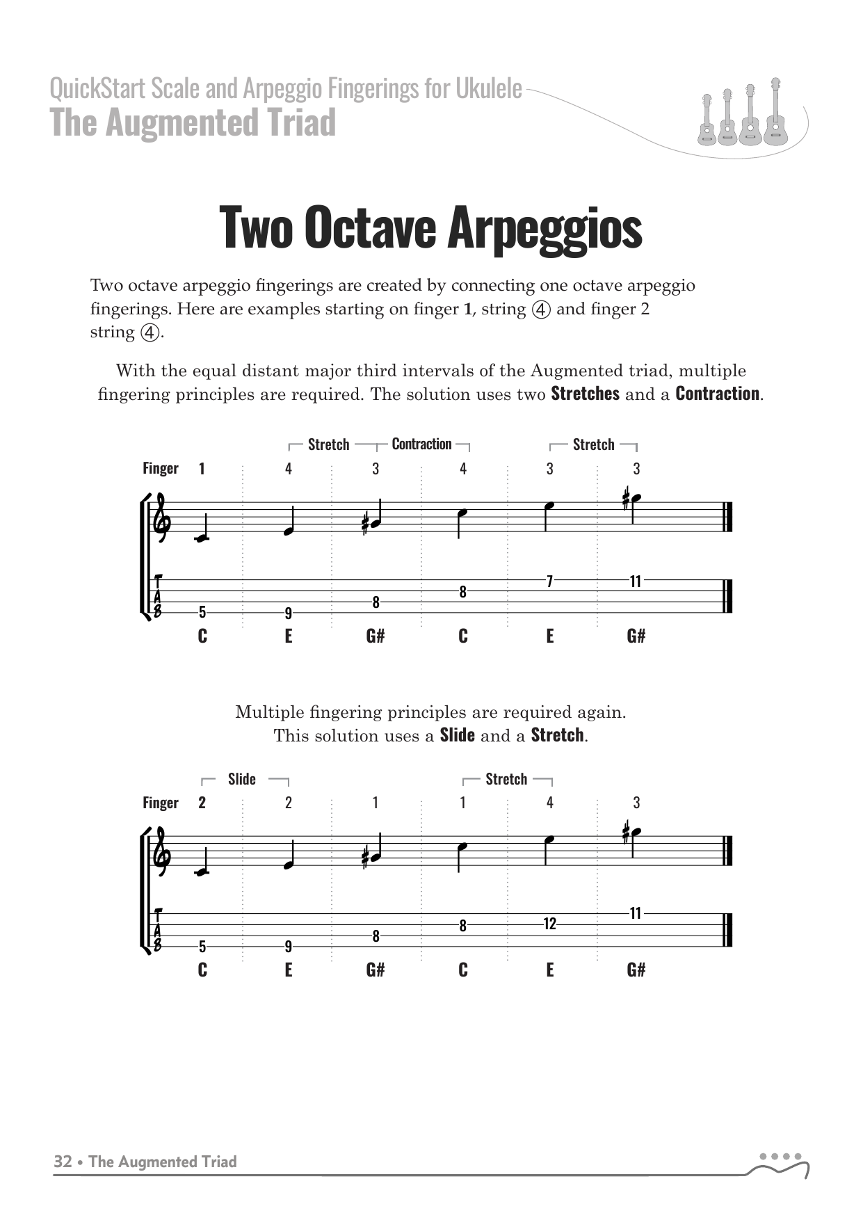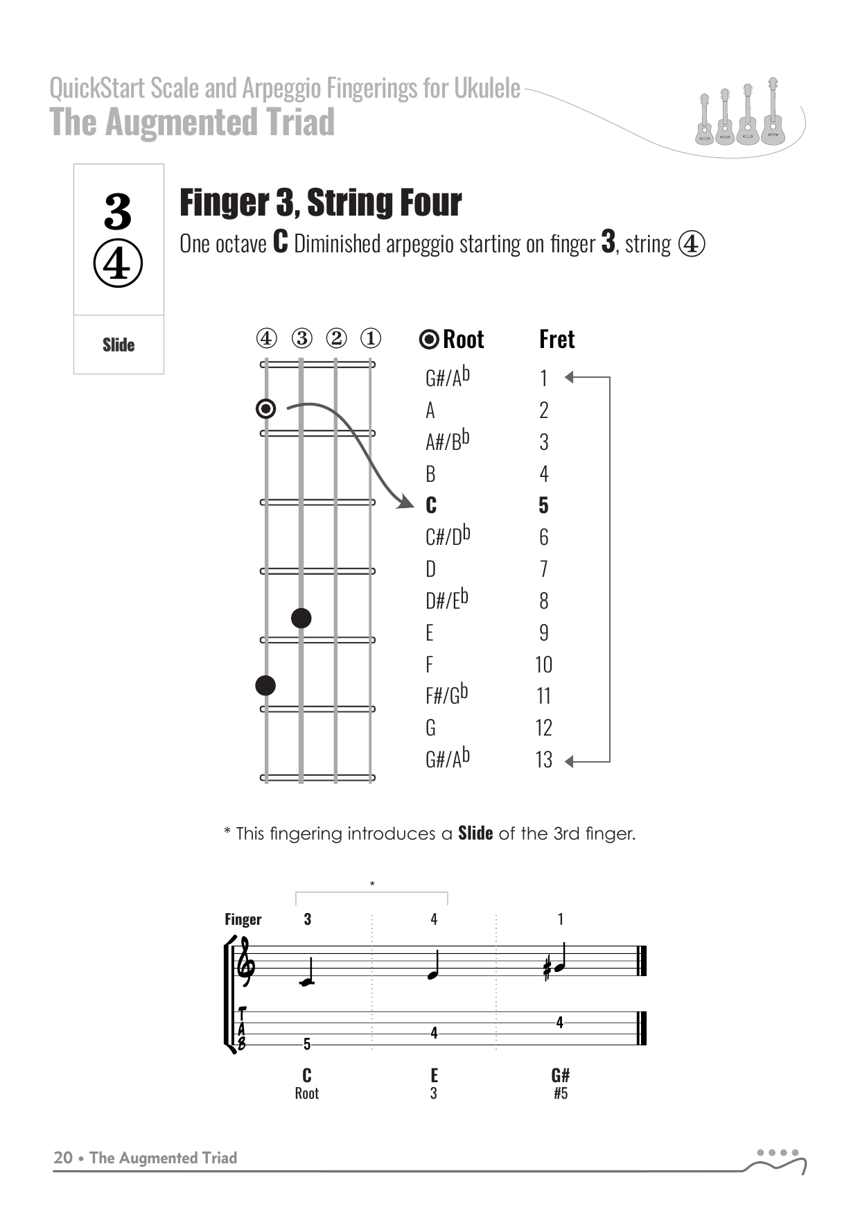 QuickStart Arpeggio Fingerings for Ukulele, C Tuning - Augmented Triad.