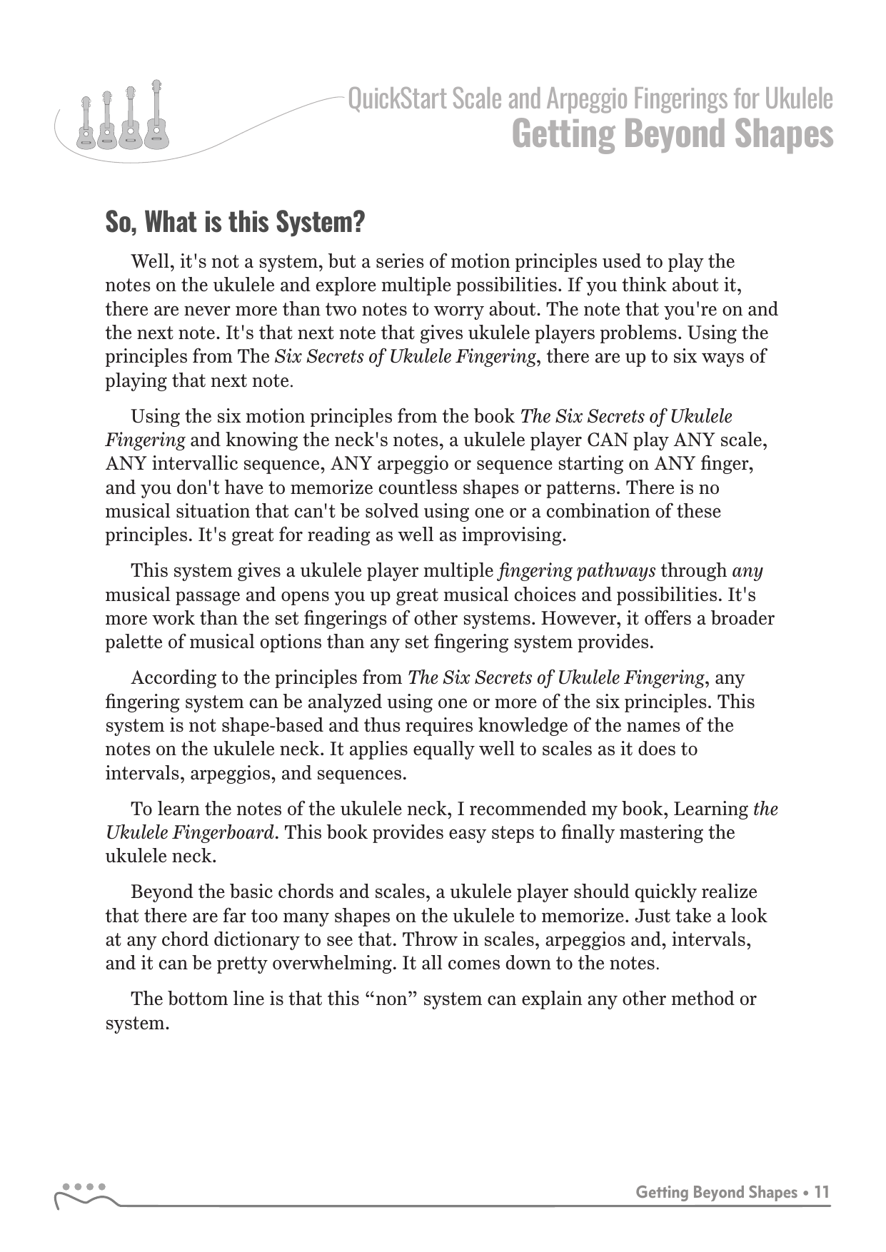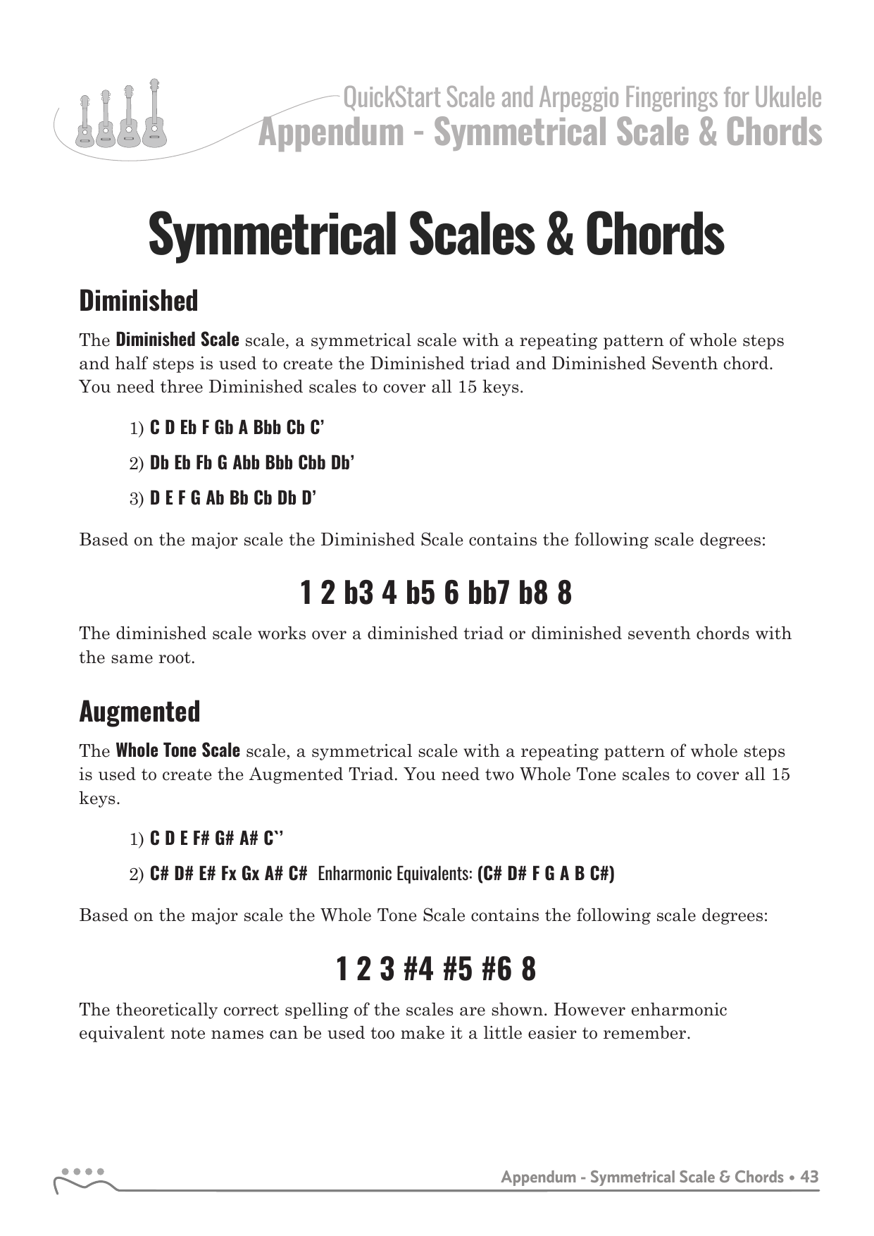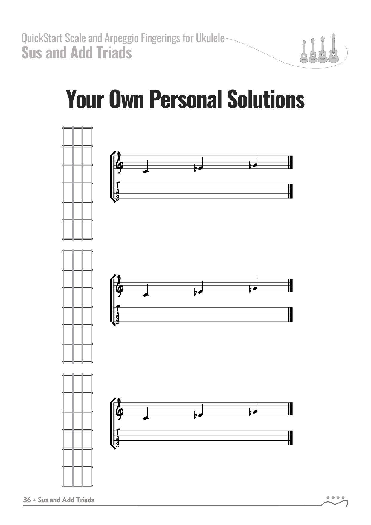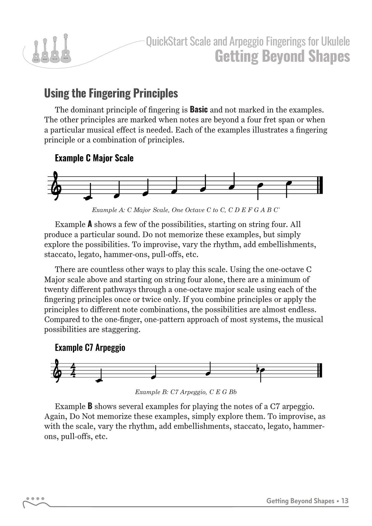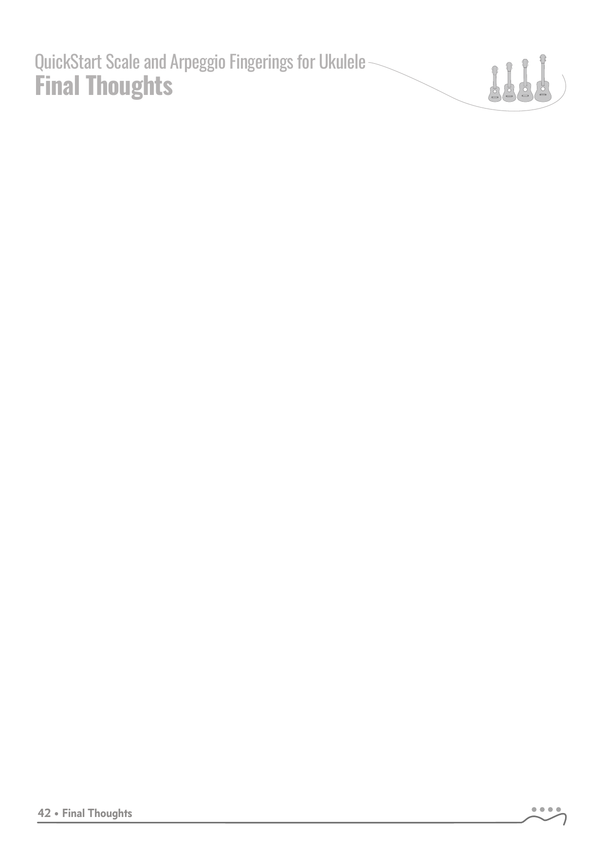 QuickStart Scale and Arpeggio Fingering Series are a concise, well-organized series of books and lessons ideal for any ukulele, guitar or fretted string player beginning to explore scales and arpeggios. Unlike so many other instruction books on the market, QuickStart Scale and Arpeggio Fingering Series keeps a sharp focus on the six critical scales, their fingerings and their related chords. All material is covered in every key.