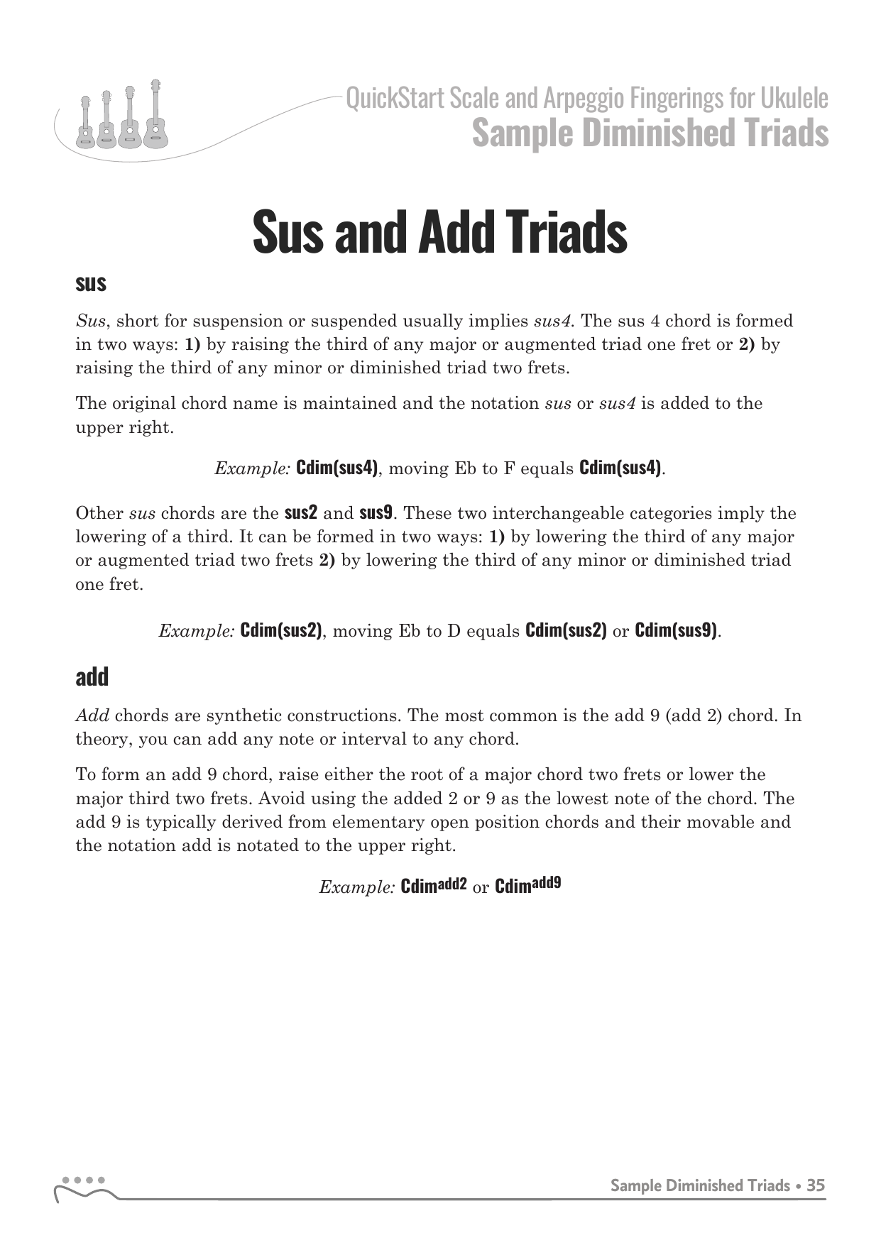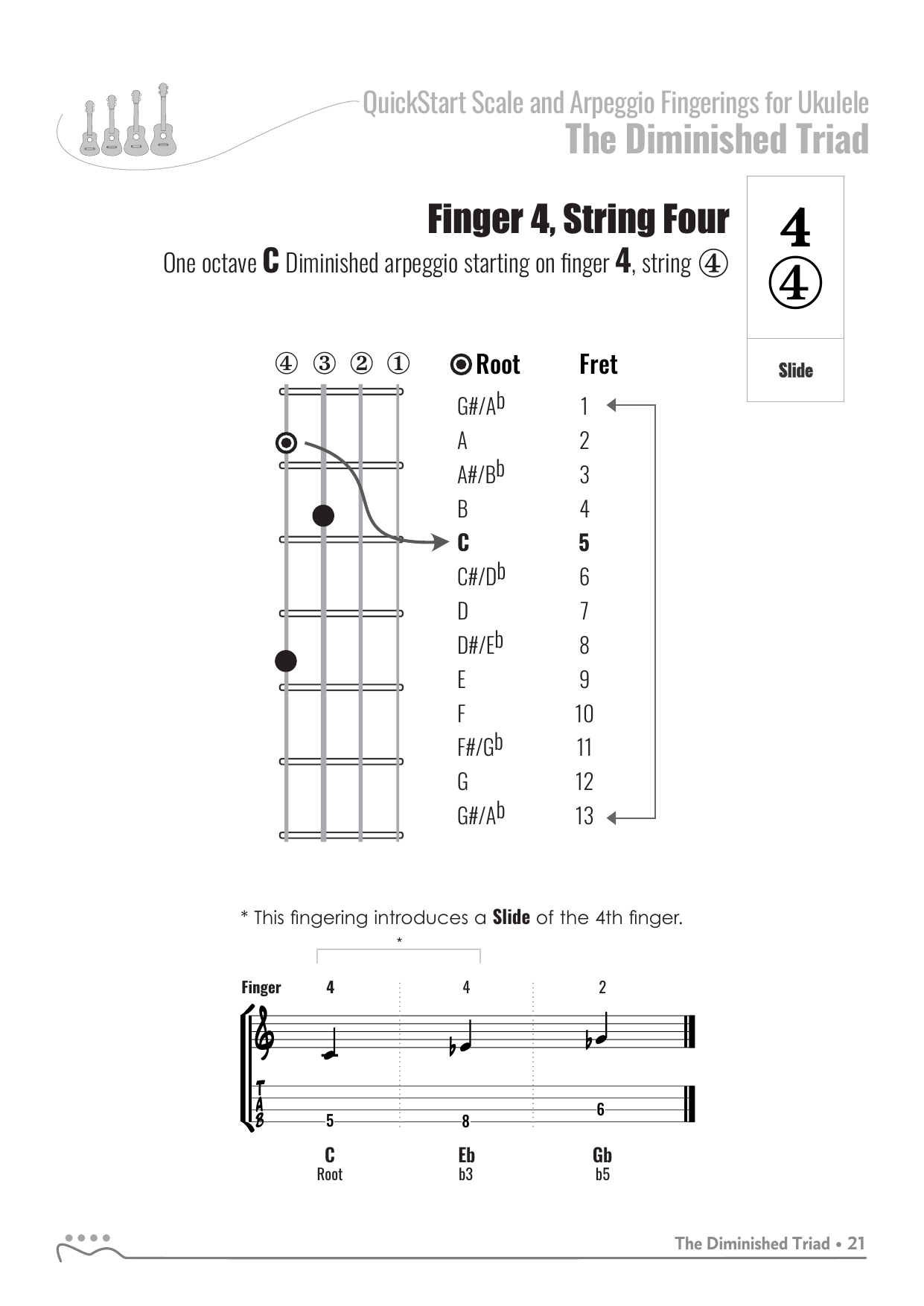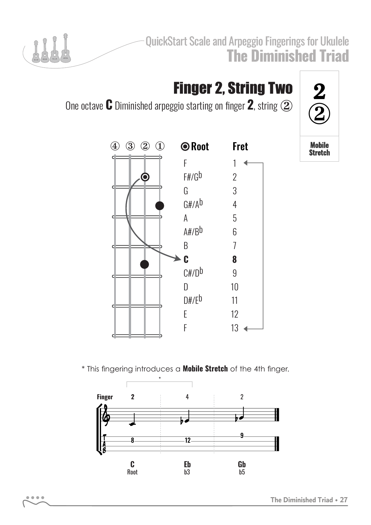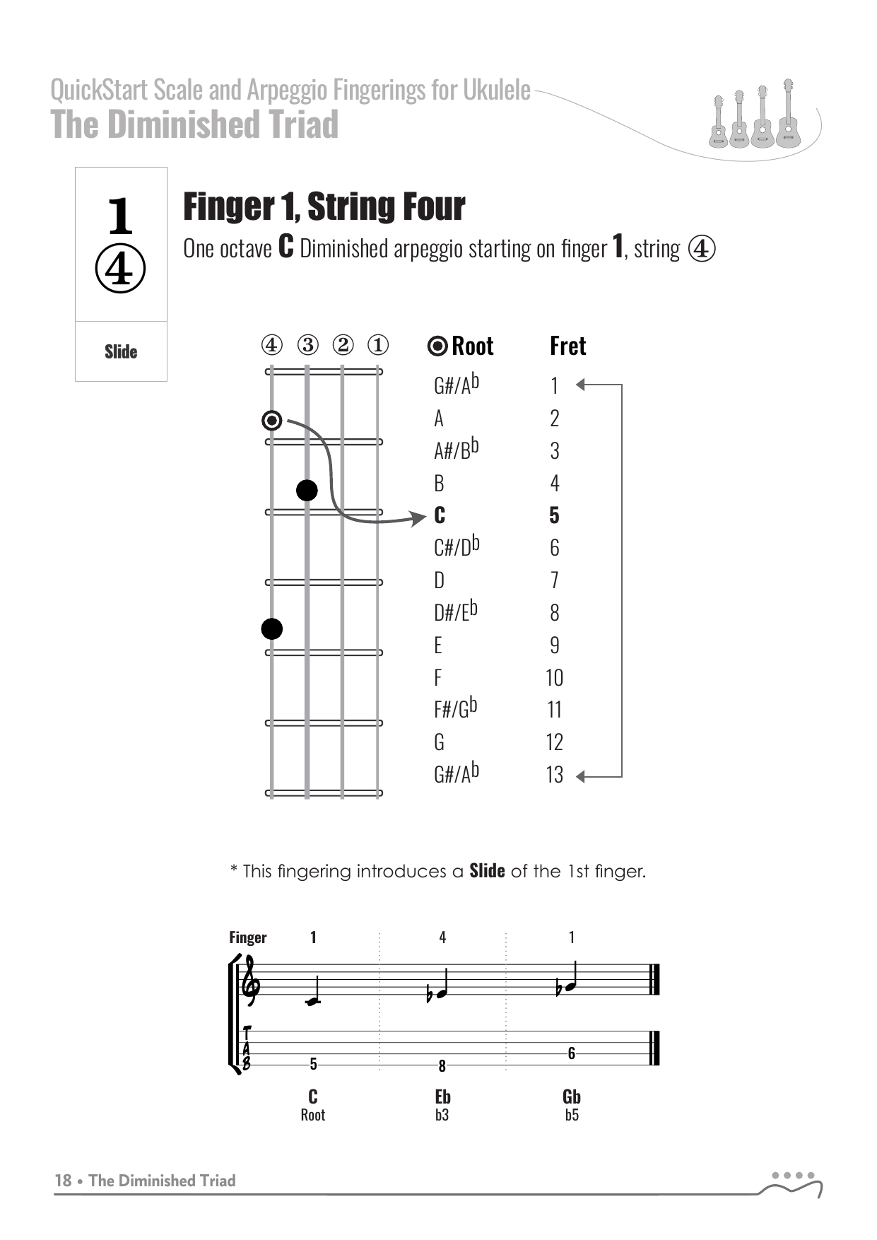 QuickStart Arpeggio Fingerings for Ukulele, C Tuning - Diminished Triad.