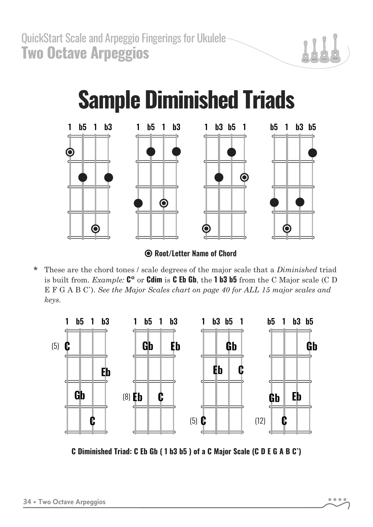 QuickStart Arpeggio Fingerings for Ukulele, C Tuning - Diminished Triadon: Bluesky • facebook • twitter (X)