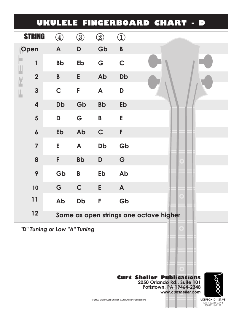 No Errata available for: Ukulele Fingerboard Chart for D Tuning, Low or High A - A D F# B