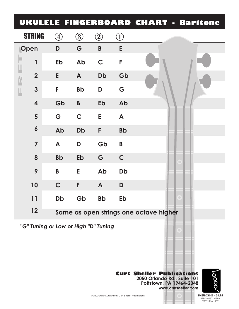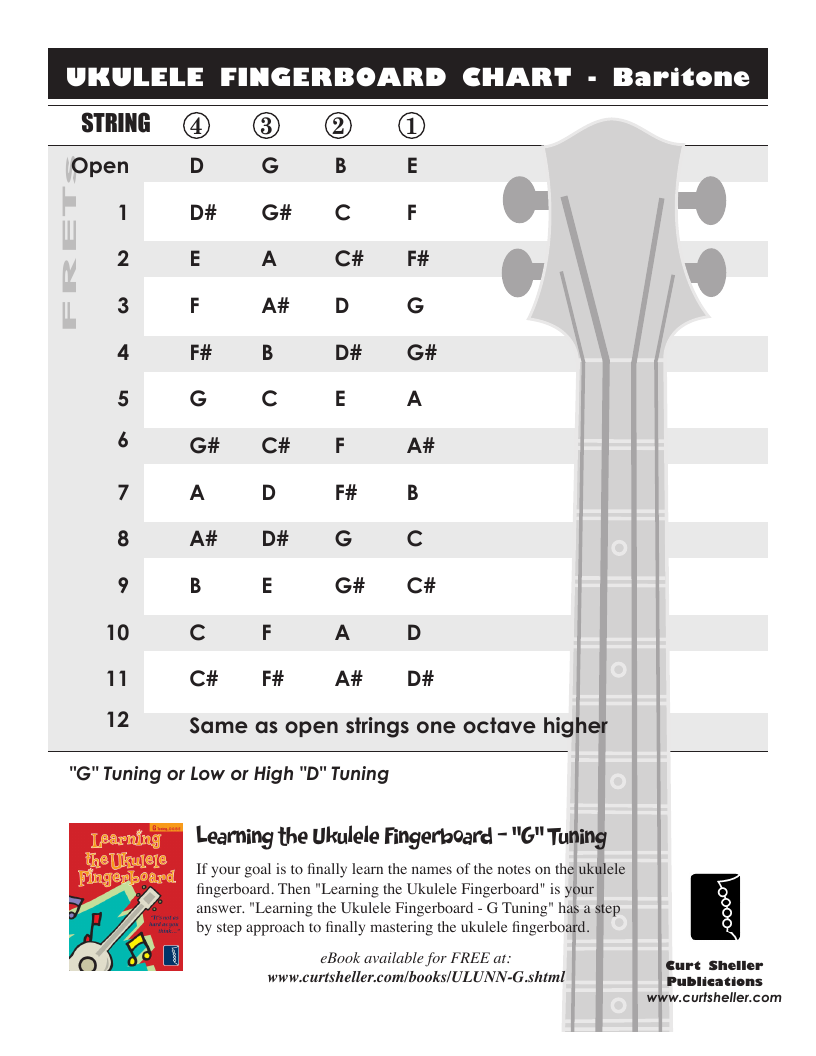 Ukulele Fingerboard Chart for G Tuning, Low or High D - D G B E