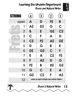Ukulele Fingerboard Chart for C Tuning, Low or High G – G C E A
