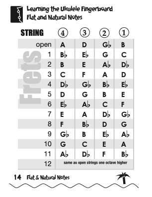 Ukulele Fingerboard Chart for G Tuning, Low or High A – D G B E