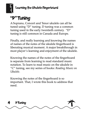 If your goal is to finally learn the names of the notes on the ukulele fingerboard. Then Learning the Ukulele Fingerboard - D Tuning is your answer. Learning the Ukulele Fingerboard - D Tuning, has a step by step approach to finally mastering the ukulele fingerboard.