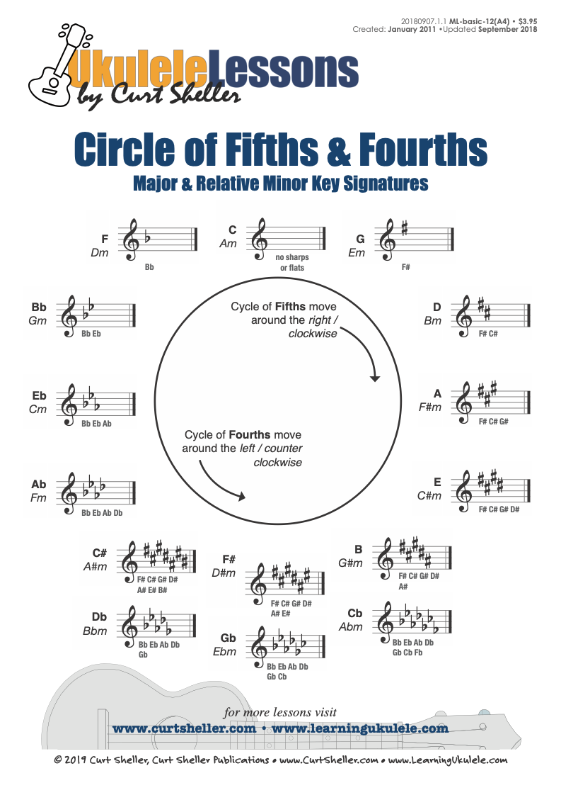 A handy dandy A4 sized reference chart of all 15 Major and Relative Minor Key Signatures.