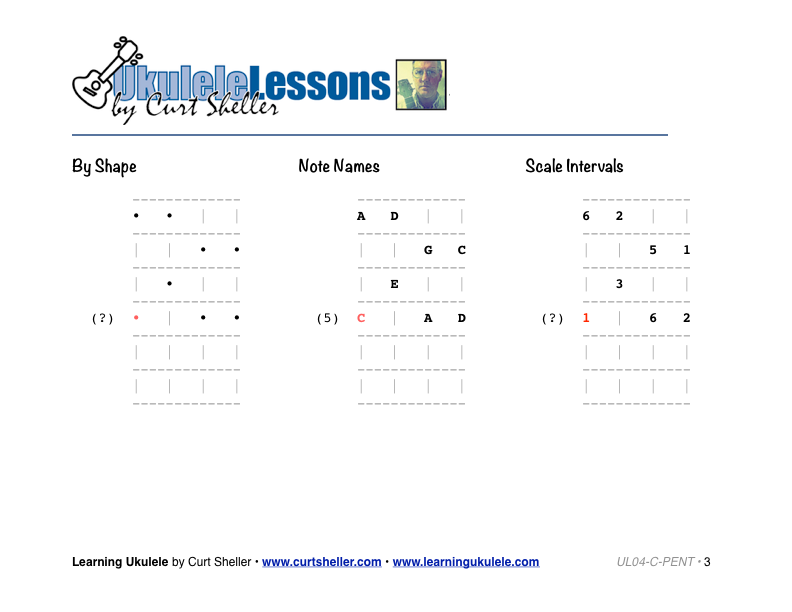 QuickStart Scale Fingerings for Ukulele, C Tuning - Pentatonic Scale