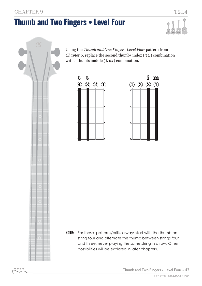 Alternating Thumb Style, Thumb and Two Fingers - Level Four.