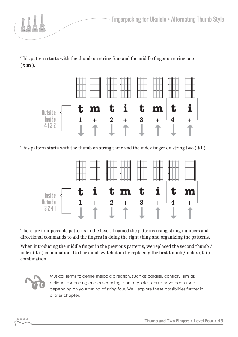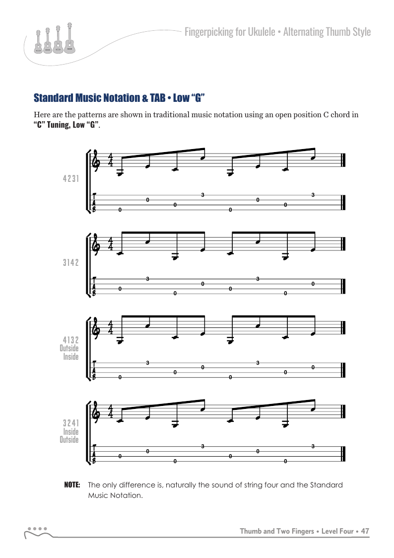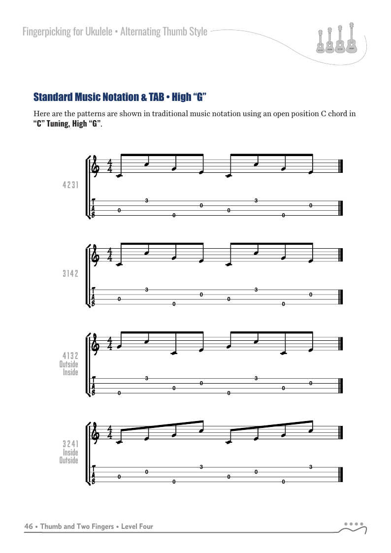 Fingerpicking for Ukulele - Alternating Thumb Style, 2nd Edition is an new expanded edition which focuses on the alternating thumb fingerpicking style through a series of graduated lessons-chapters incorporating your index and middle fingers with the alternating thumb.