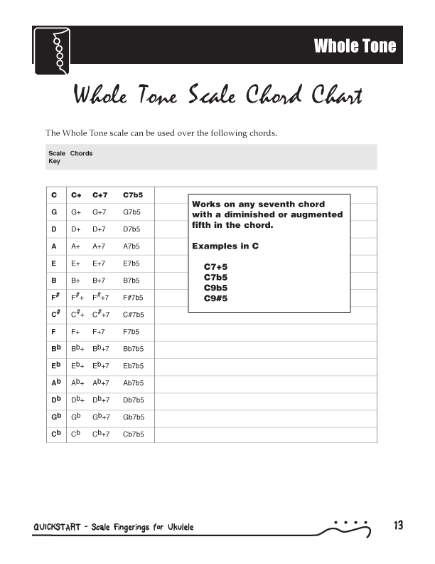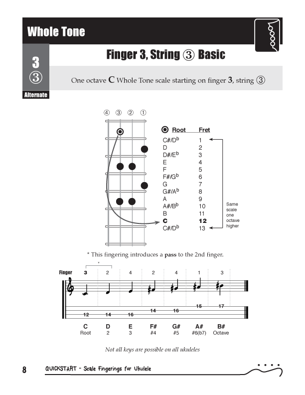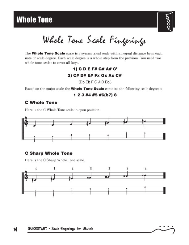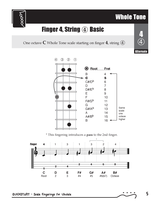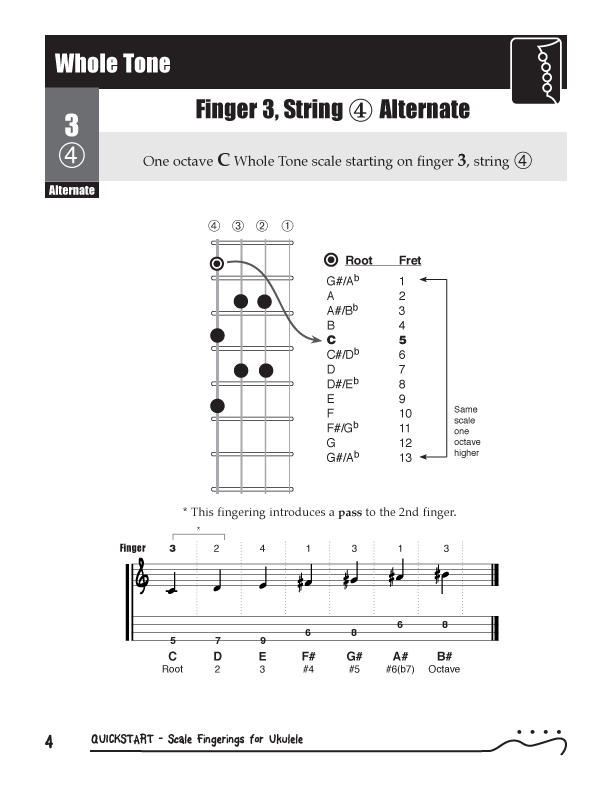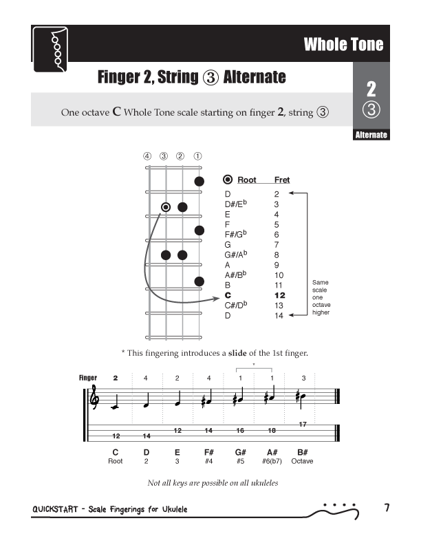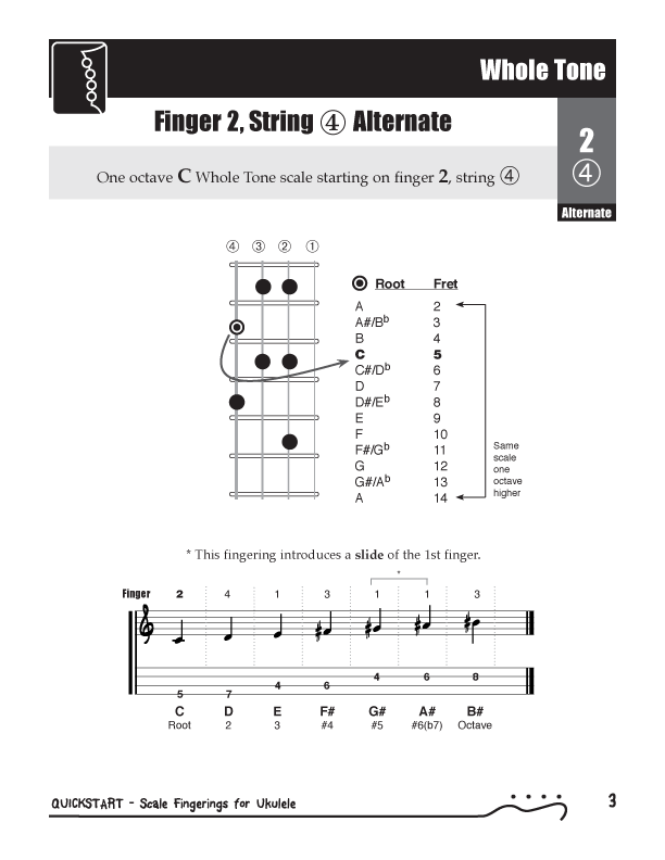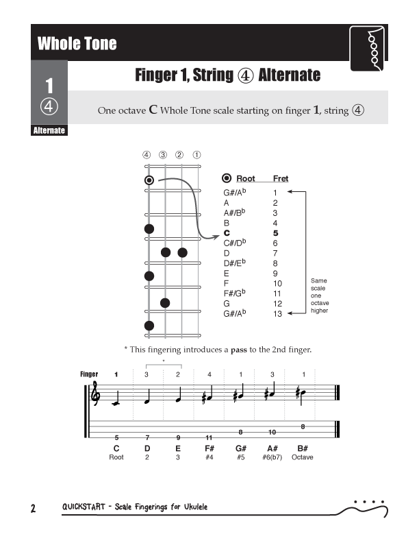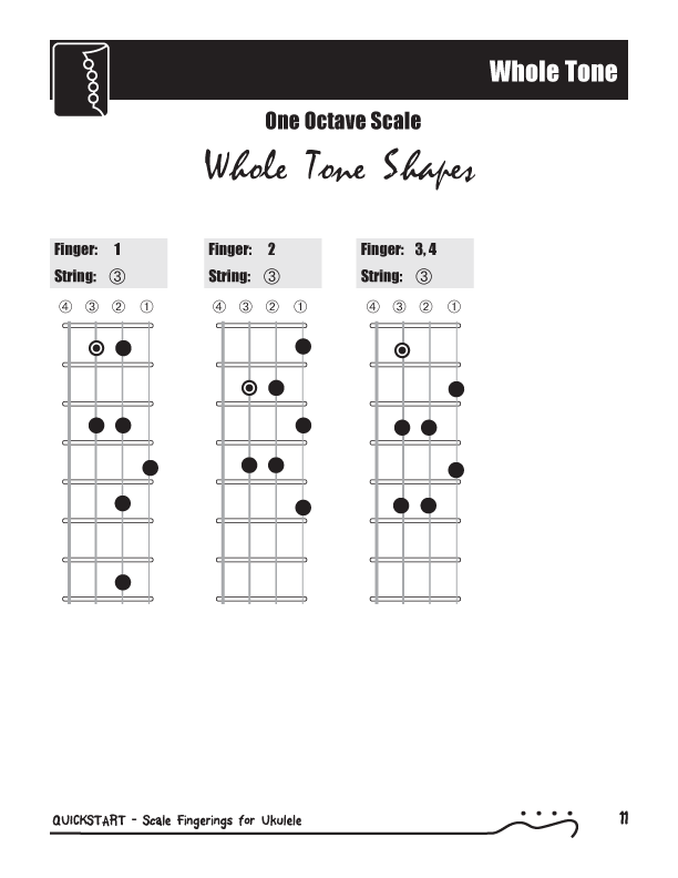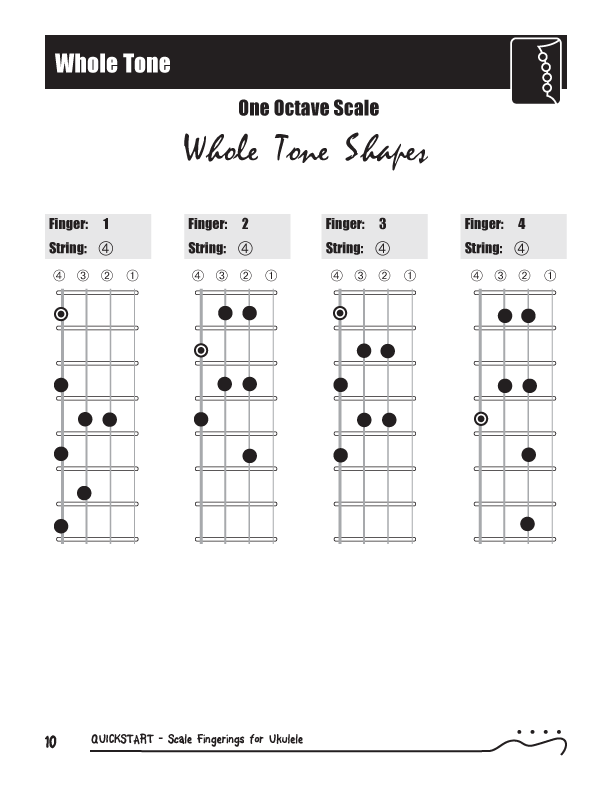 QuickStart Scale Fingerings for Ukulele, C Tuning - WholeTone Scale