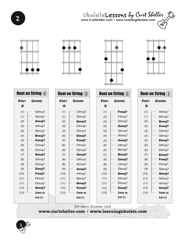 Core Chords for Ukulele, The Big Six - From four F7 chord voicings or shapes, your can build your massive 4-part, a.k.a., “jazz” chord vocabulary. Beyond basic open position chords, basic movable form chords and a core set of 4-part chords. There are just too many chords shapes too memorize.