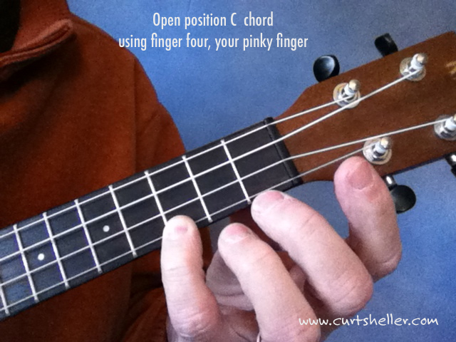Your first ukulele chord is typically an open position "C Major Chord." It's only one finger and ukulele players love to show new players this, the easiest, usable ukulele chord for new players. Especially someone coming from guitar where an open position C major is three fingers and not that easy as the first chord.