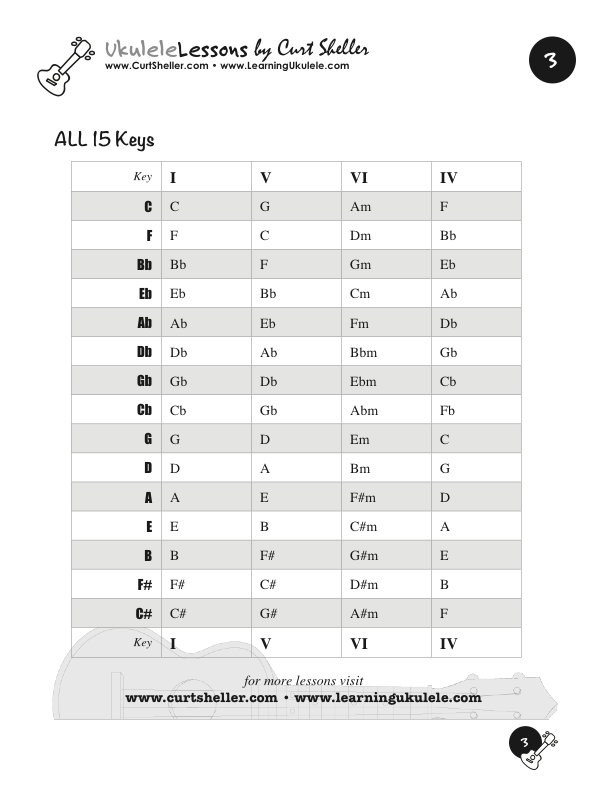 As you can see you can learn quite a few songs by simply learning common chord progressions in all 15 keys. Especially the common keys of C, G, D, E, A. And on ukulele F and Bb are also common.