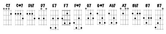 Core Chords is a series of lessons for building your 4-part chords. These chords commonly called jazz chords, are really just 4-part chords used in a wide range of musical styles. Beyond basic open position chords, basic movable form chords and a core set of 4-part chords. There are just too many chords shapes too memorize. Learning the principles of how chords are constructed and the ukulele fingerboard are the way to go. Then you can create more advanced chords like 9#11, 7#5-9, 13b5, 7+9 on the fly as needed.