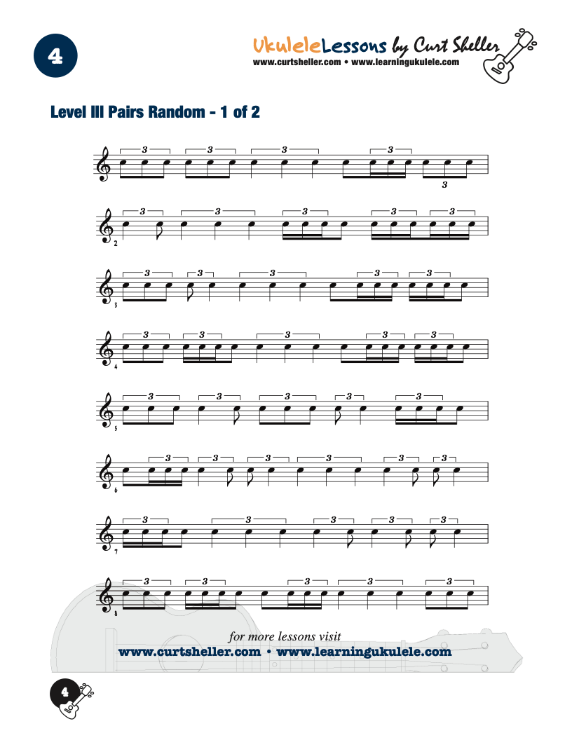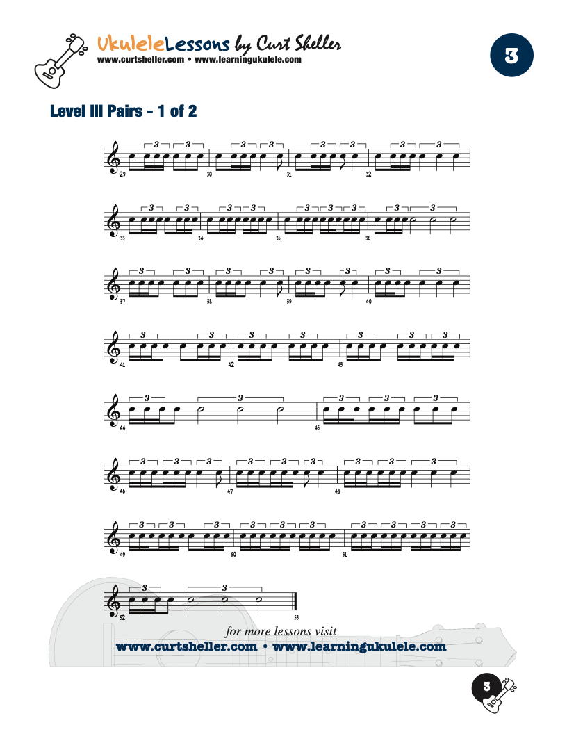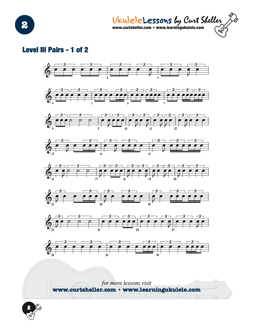 Level III rhythmic syllable pairs for developing your ukulele strums vocabulary and sharpen your reading chops.